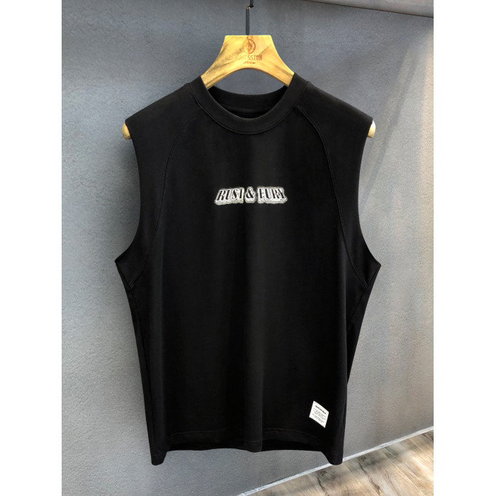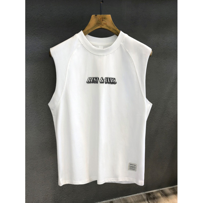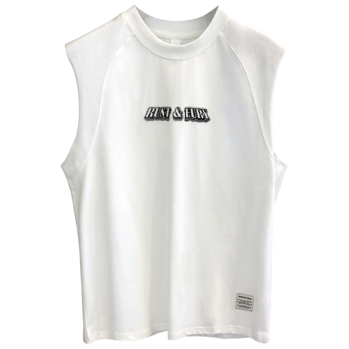 純棉舒適感復古字母印花運動健身背心男士坎肩2025寬松無袖T恤男