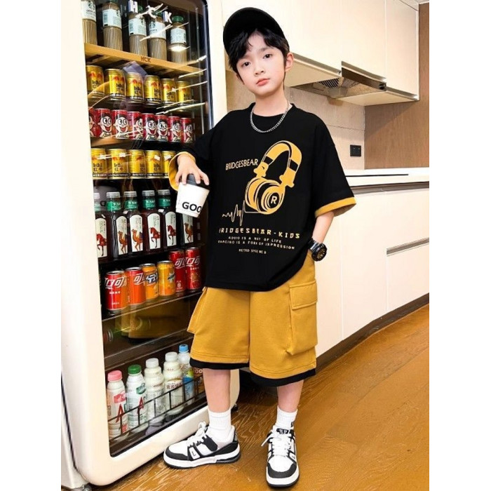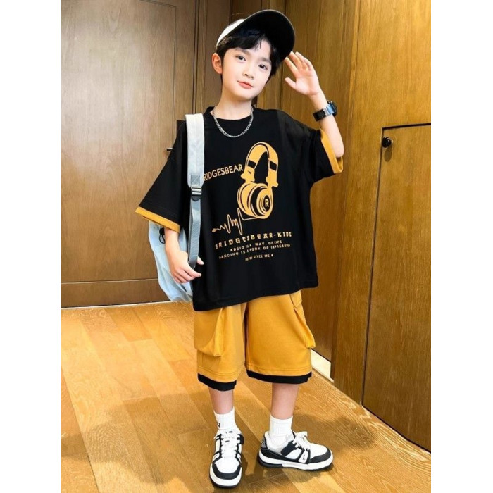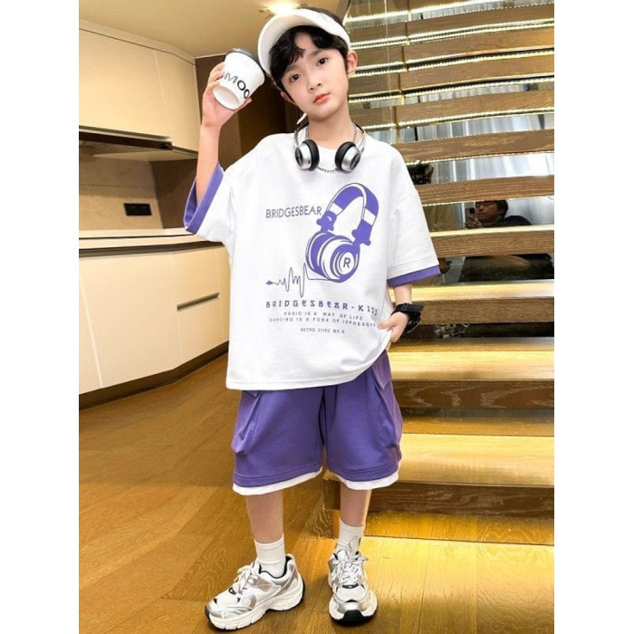 安哼安哼男童夏季短袖套裝2025新款夏裝中大童兒童男孩夏款網紅炸