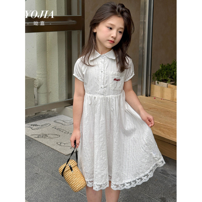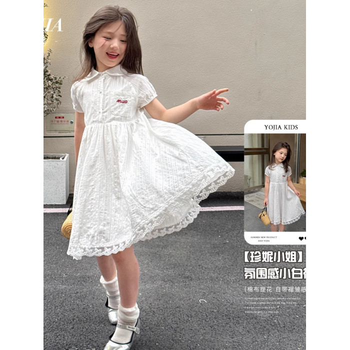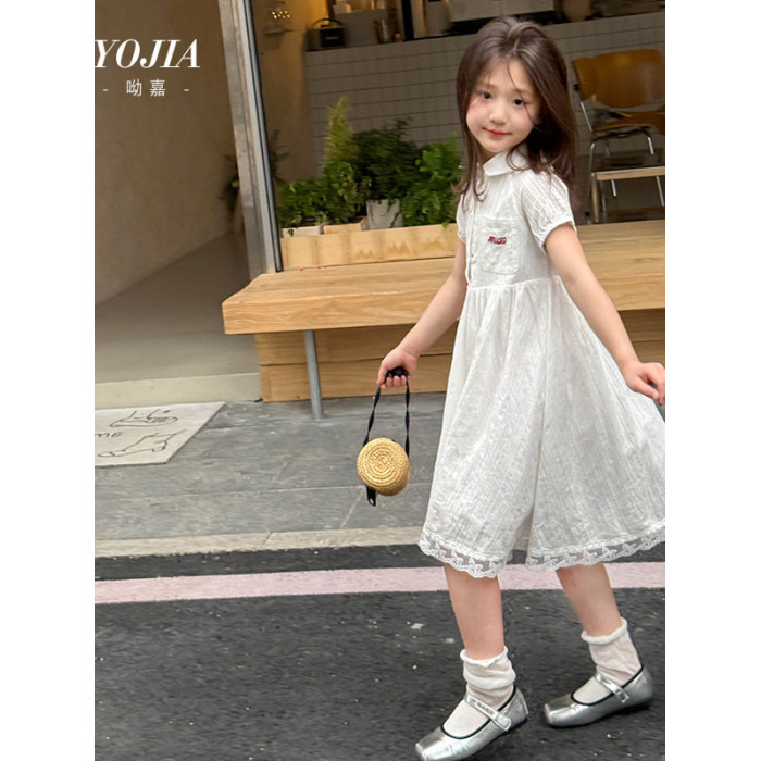 女童連衣裙夏季2025新款洋氣小女孩公主裙短袖兒童裙子甜美小白裙