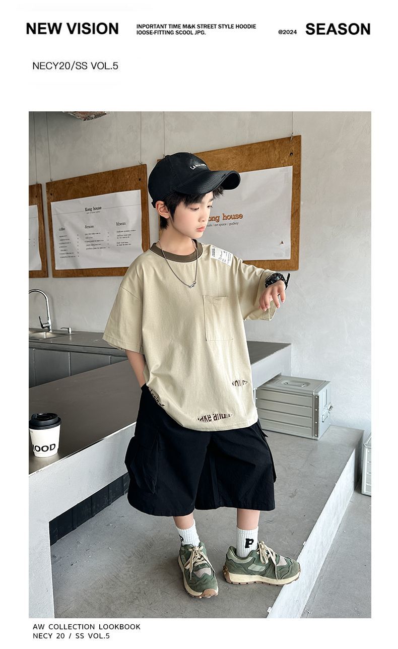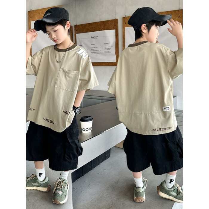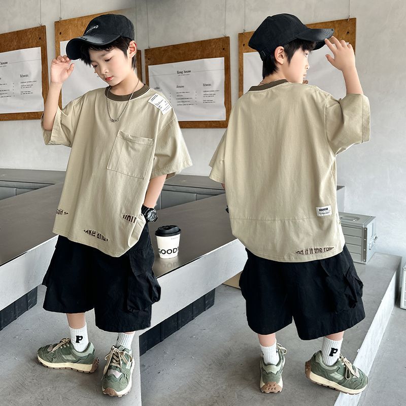 安哼安哼男童夏裝套裝2025新款大童夏季薄款男孩休閒短袖兒童韓系