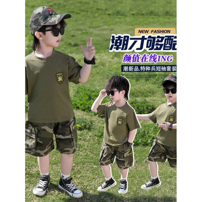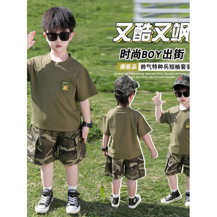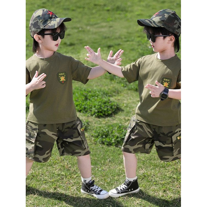 安哼安哼男童迷彩套裝夏裝2025新款兒童裝短袖夏季痞帥氣男孩炸街