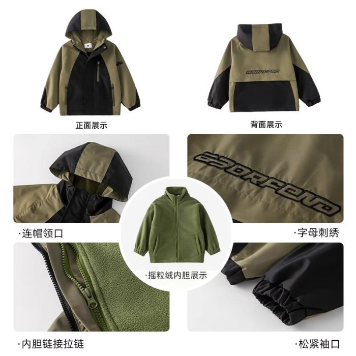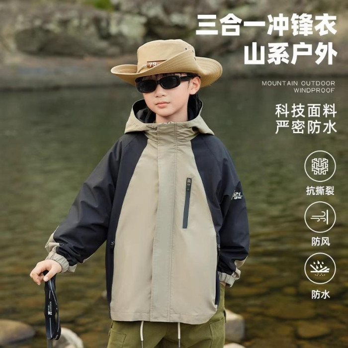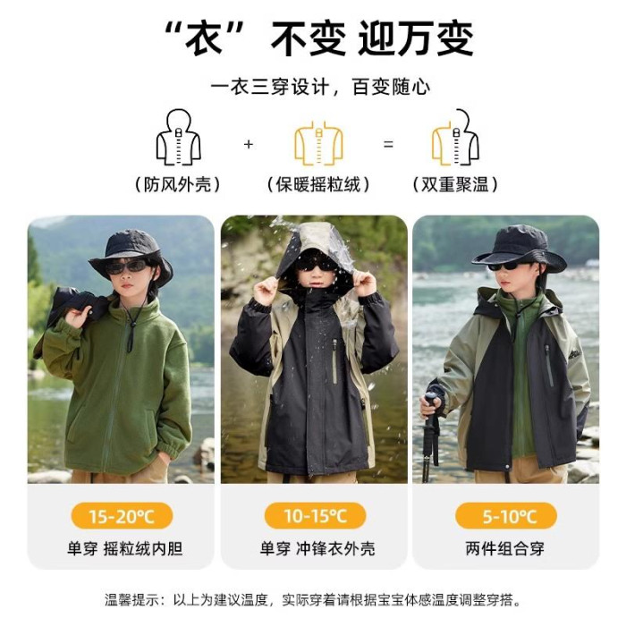 日本PUNDA男童沖鋒衣新款三合一防風防水保暖秋冬季戶外登山外套
