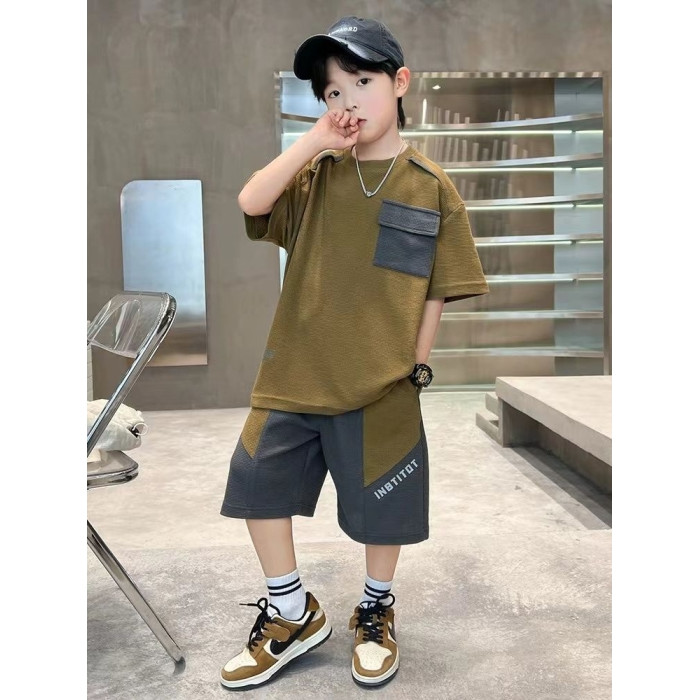安哼安哼男童夏季套裝2025新款兒童裝夏裝潮帥氣時髦男孩短袖運動
