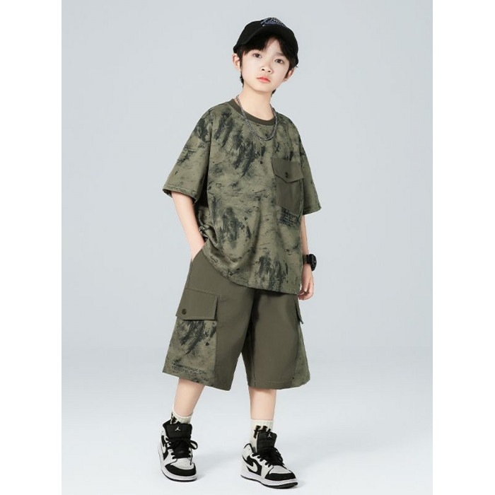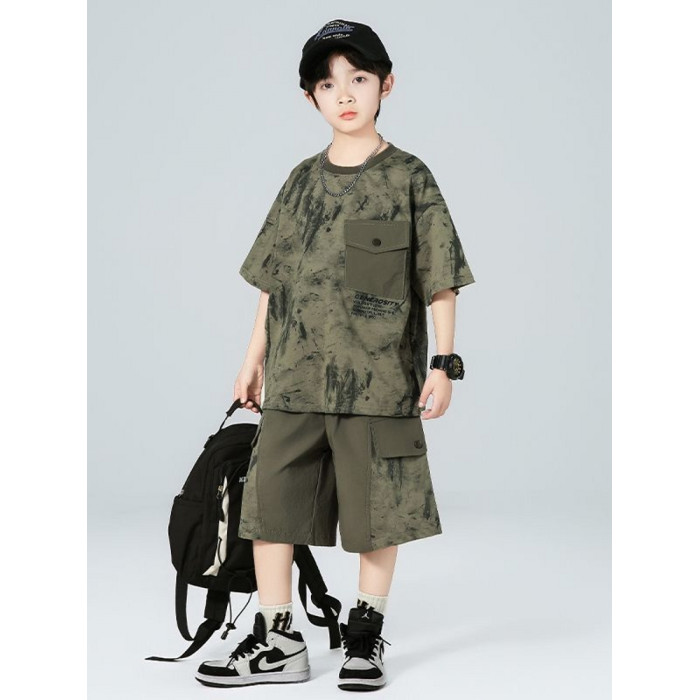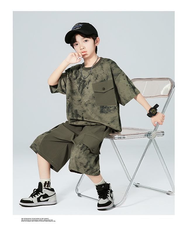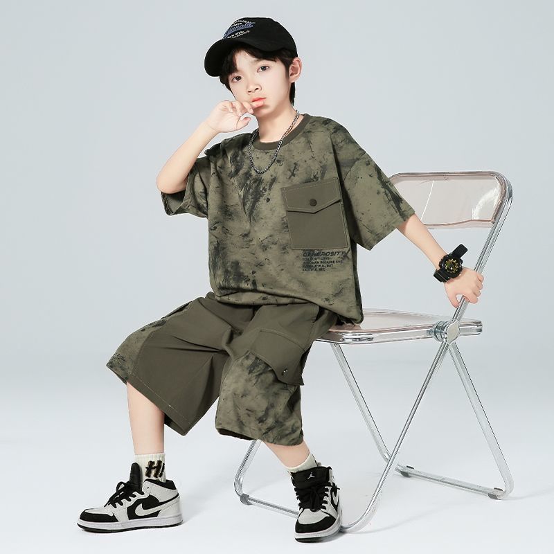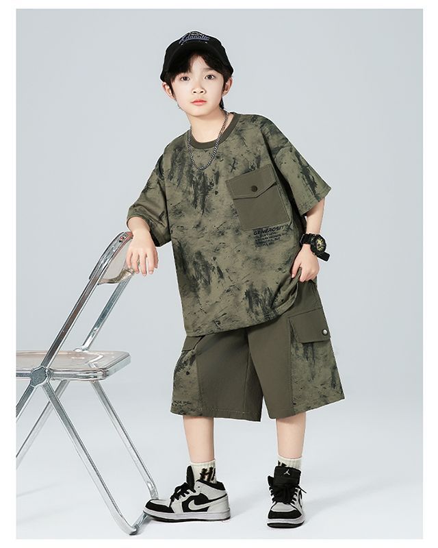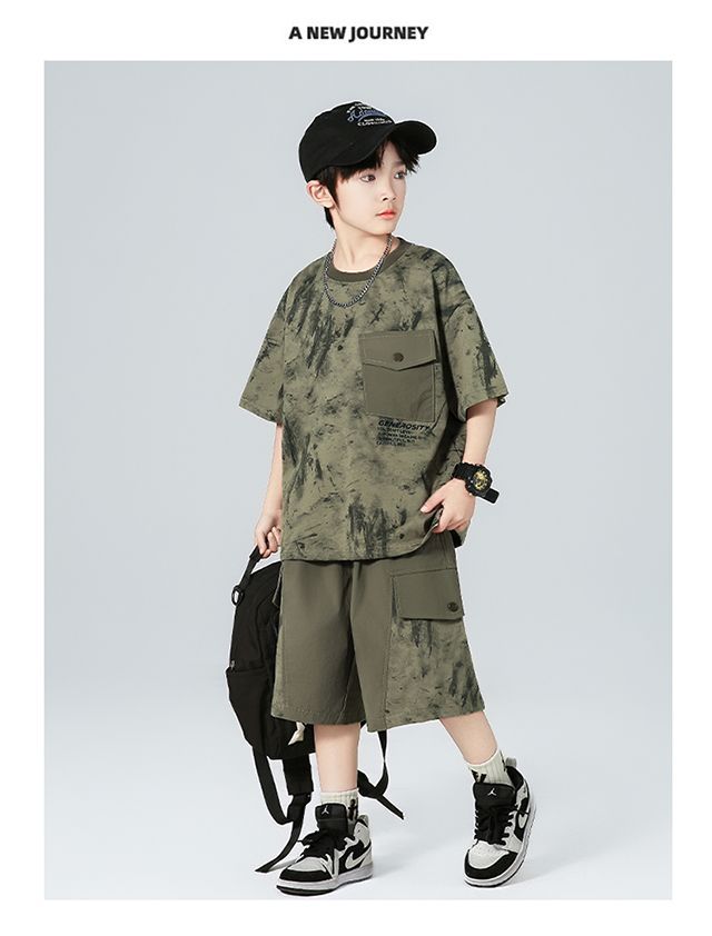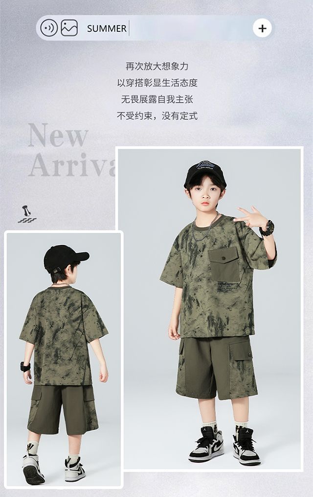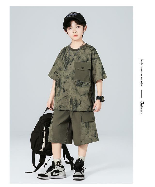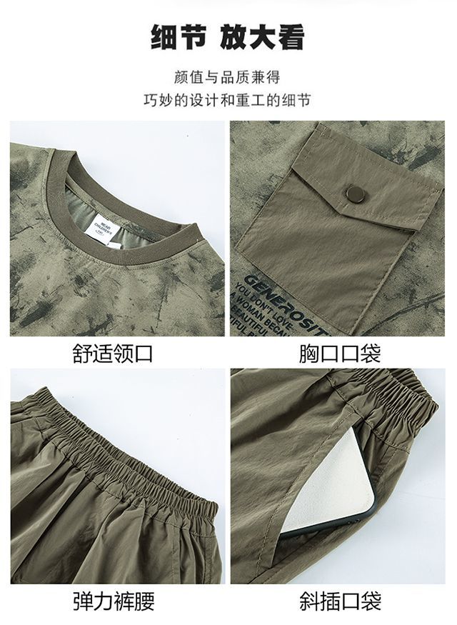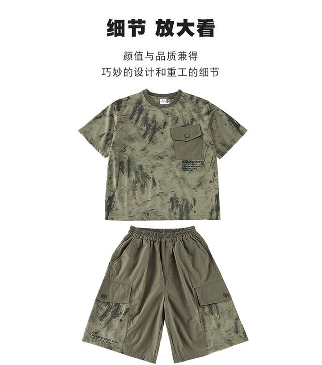 安哼安哼男童夏裝迷彩套裝2025新款中大童夏季短袖短褲兩件套男孩