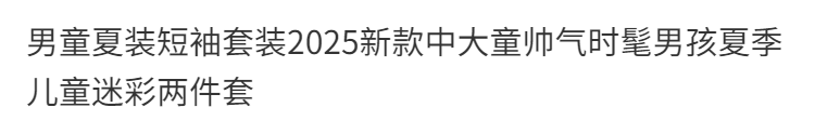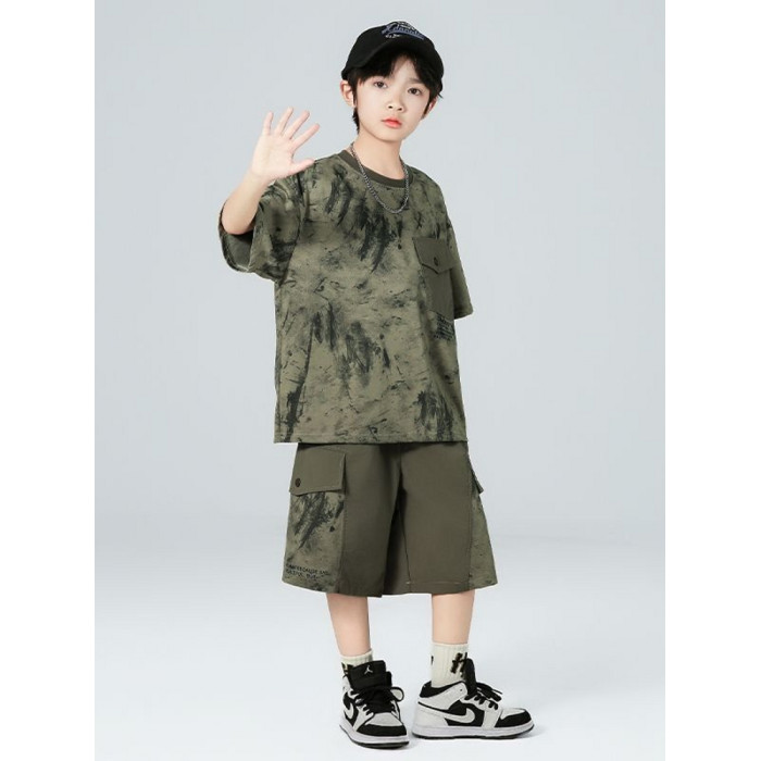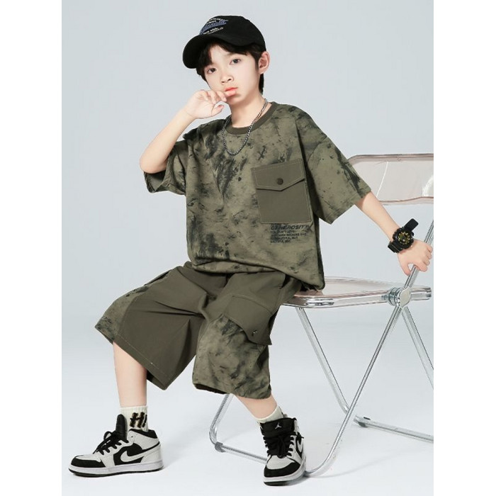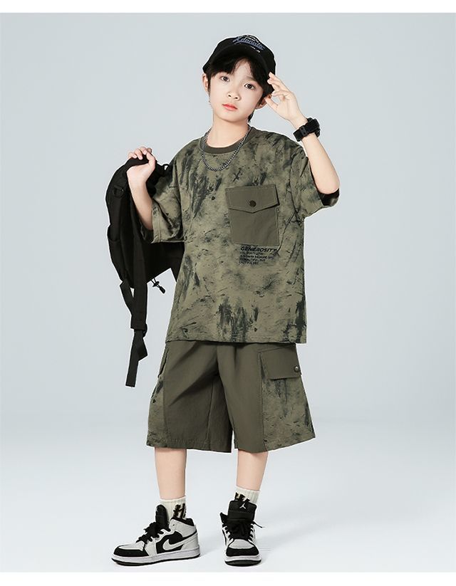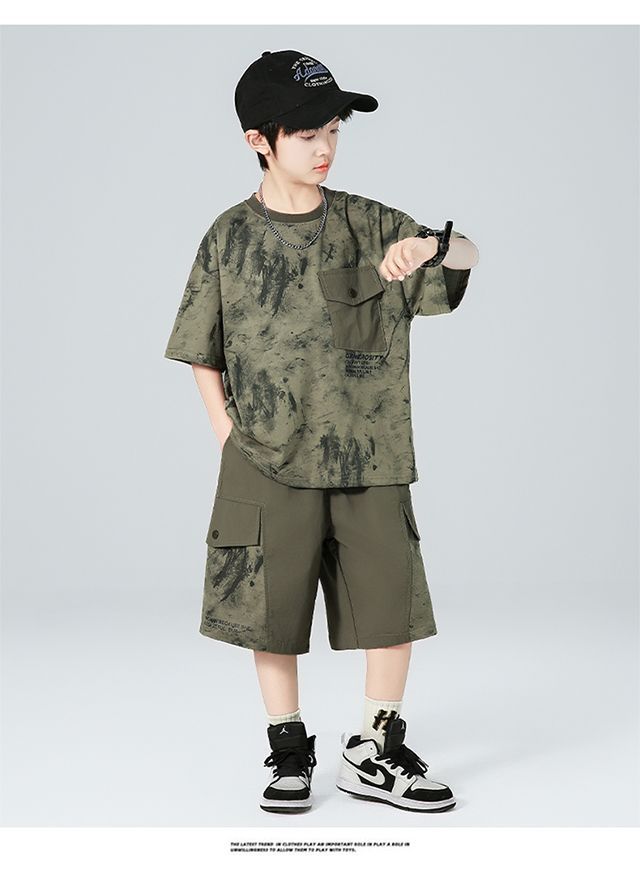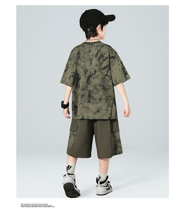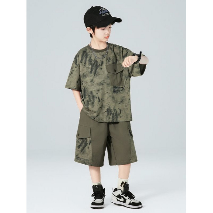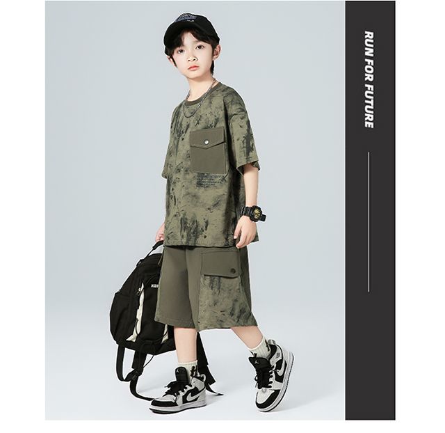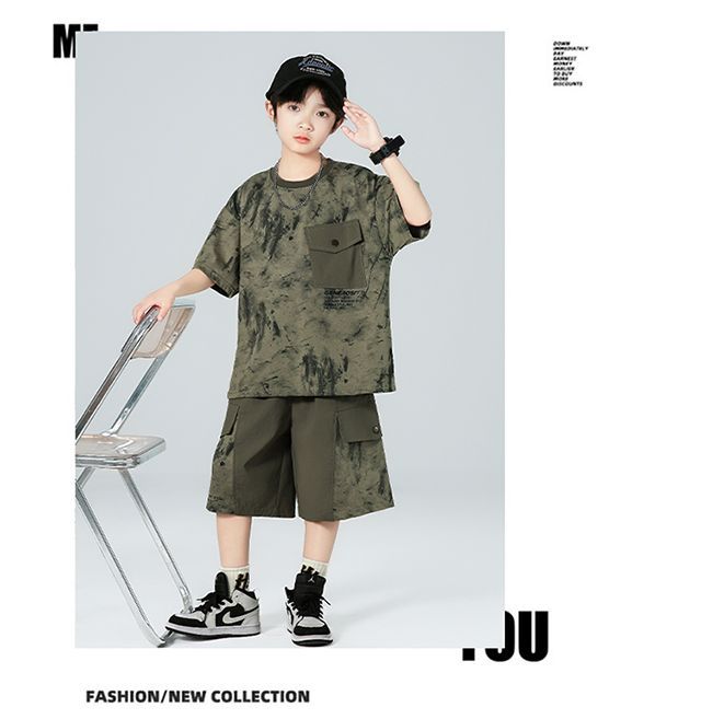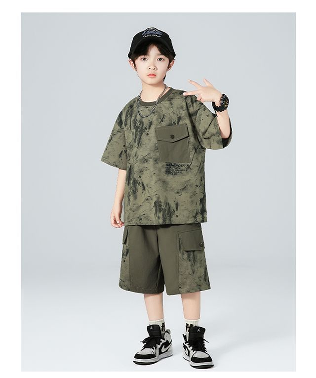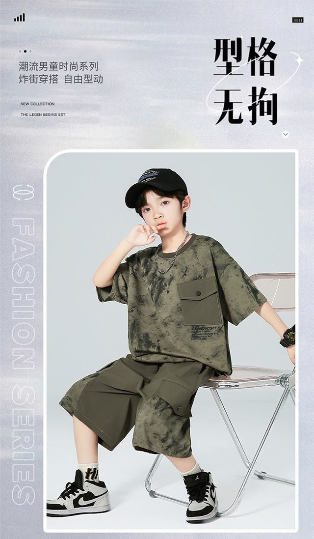 安哼安哼男童夏裝迷彩套裝2025新款中大童夏季短袖短褲兩件套男孩