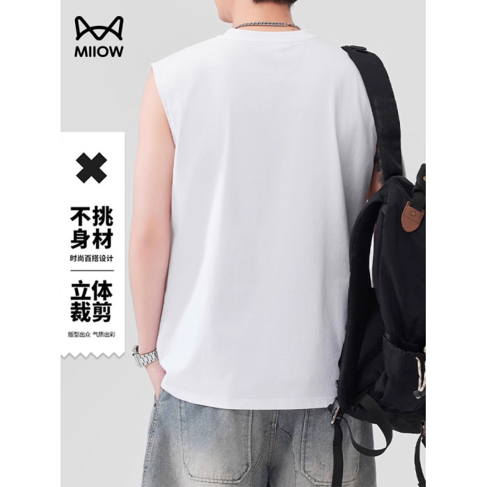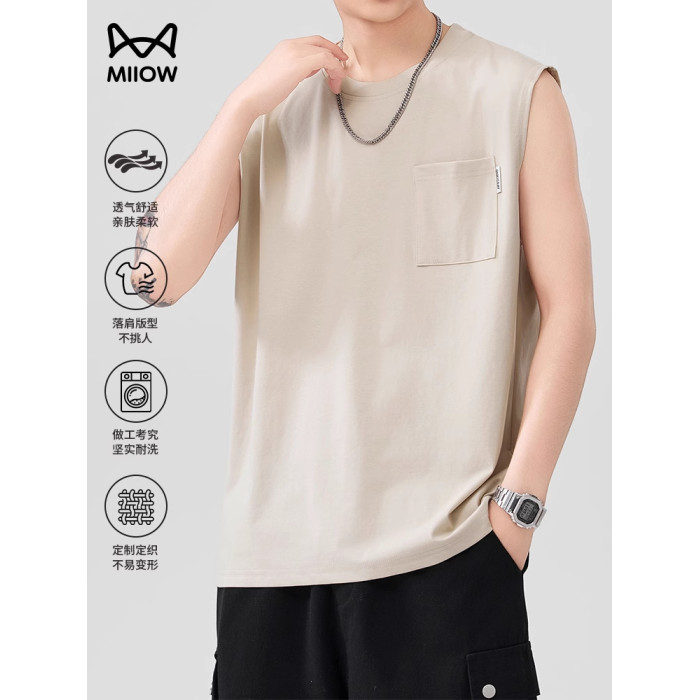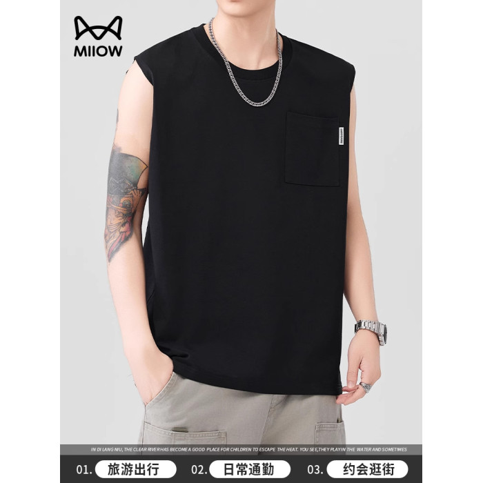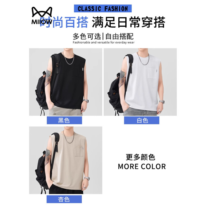 貓人運動健身涼感汗背心男夏季寬松口袋休閒無袖T恤籃球坎肩百搭