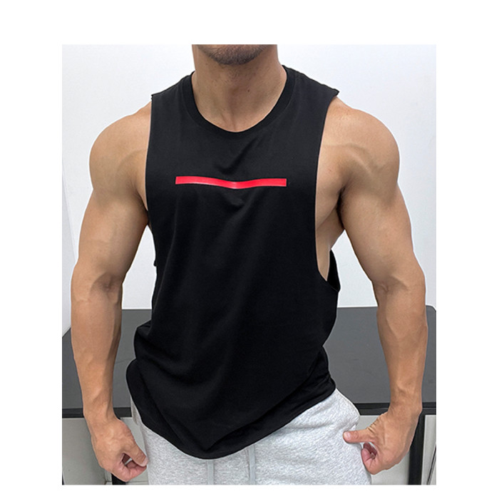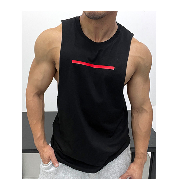 深挖純棉顯身材!卷邊運動背心體育生健身運動男潮寬松無袖T恤性感