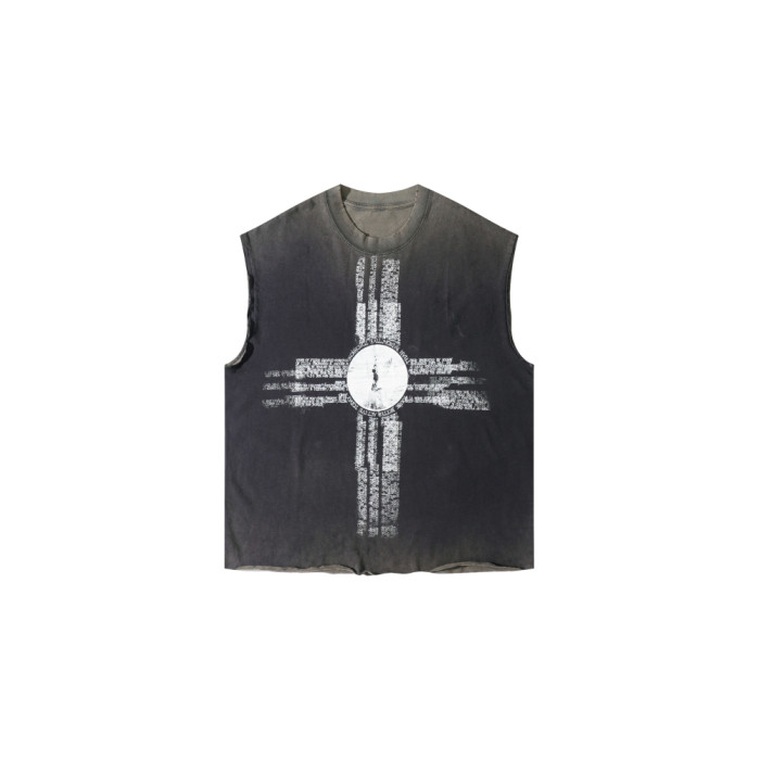 SMILEANDSAD REMAKE25SS手工ICONS OF FILTH十字重曡水洗坎肩背心