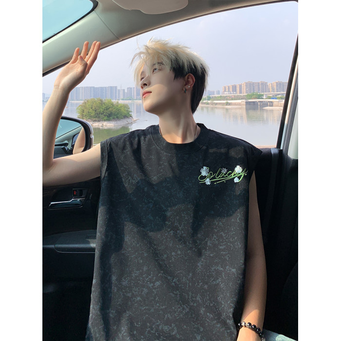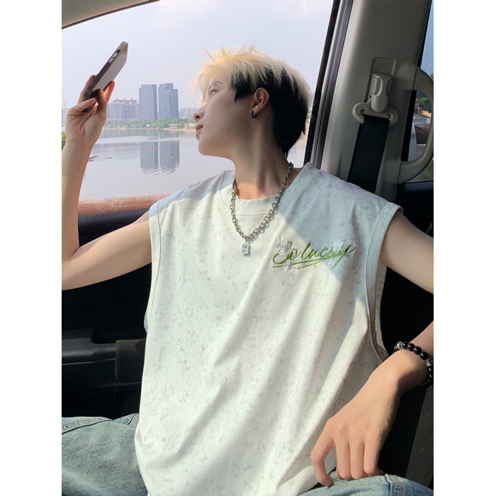 背心男孩青少年夏季薄款寬松無袖t恤男裝士潮牌運動健身坎肩汗衫