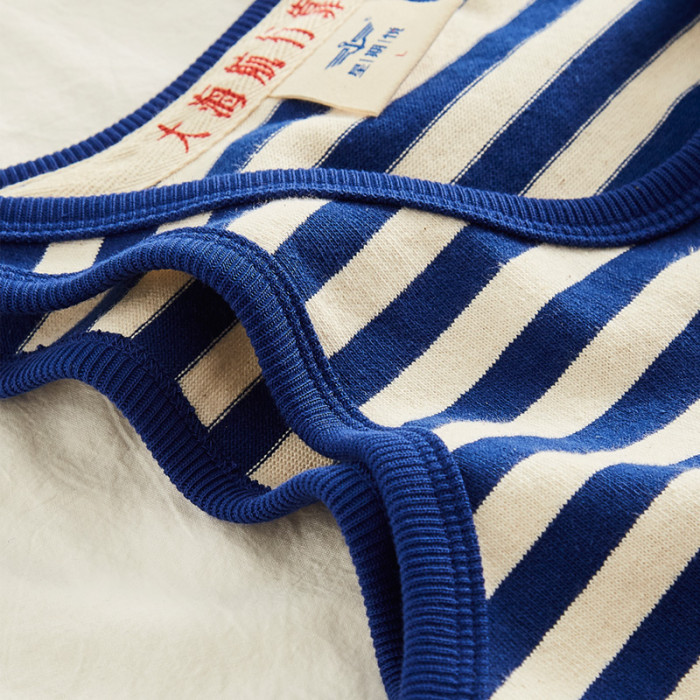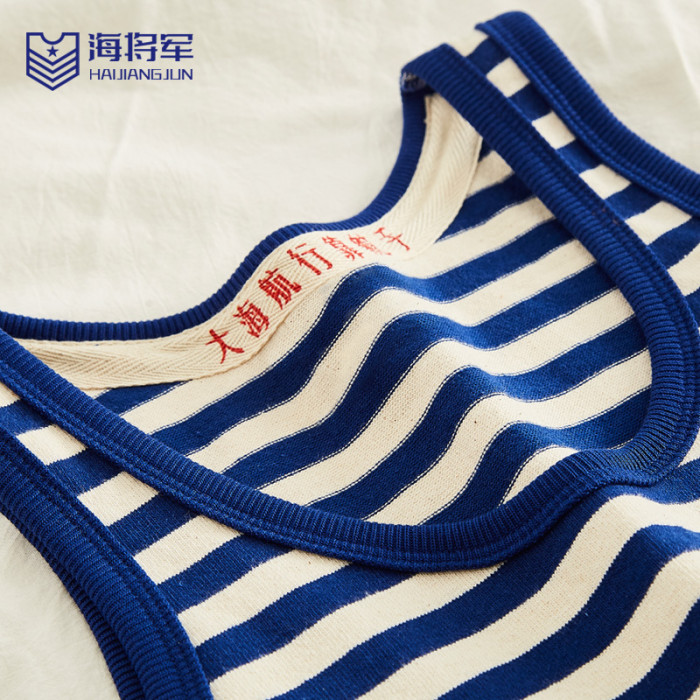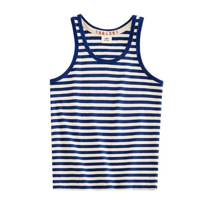 條紋背心男有機棉海魂衫純棉無袖t恤坎肩夏季打底運動寬松