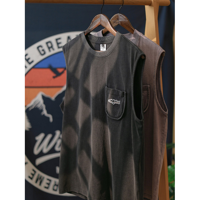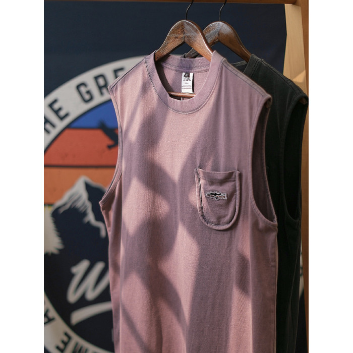 夏季刺綉口袋運動純棉工裝背心男新款百搭休閒寬松釣魚無袖坎肩男