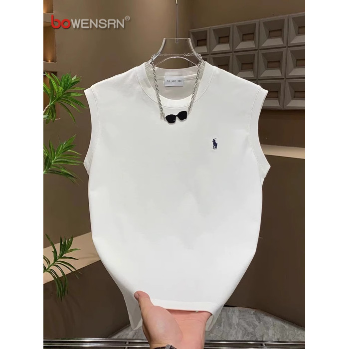 美式潮牌戰馬刺綉背心男士2025新款夏季保羅坎肩運動無袖t恤男款