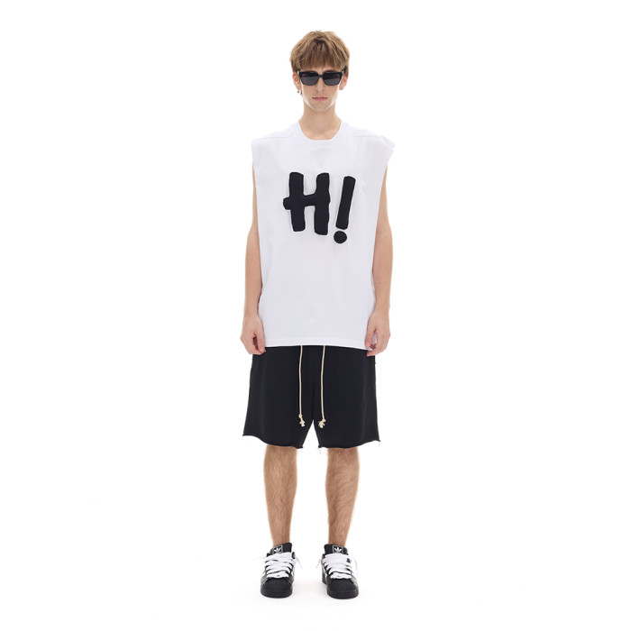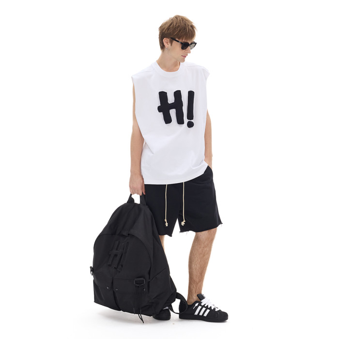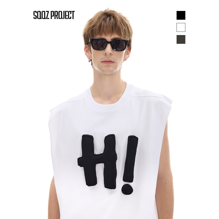 SQQZ PROJECT春夏300G立體H!塞棉撞色字母寬松圓領無袖背心情侶款