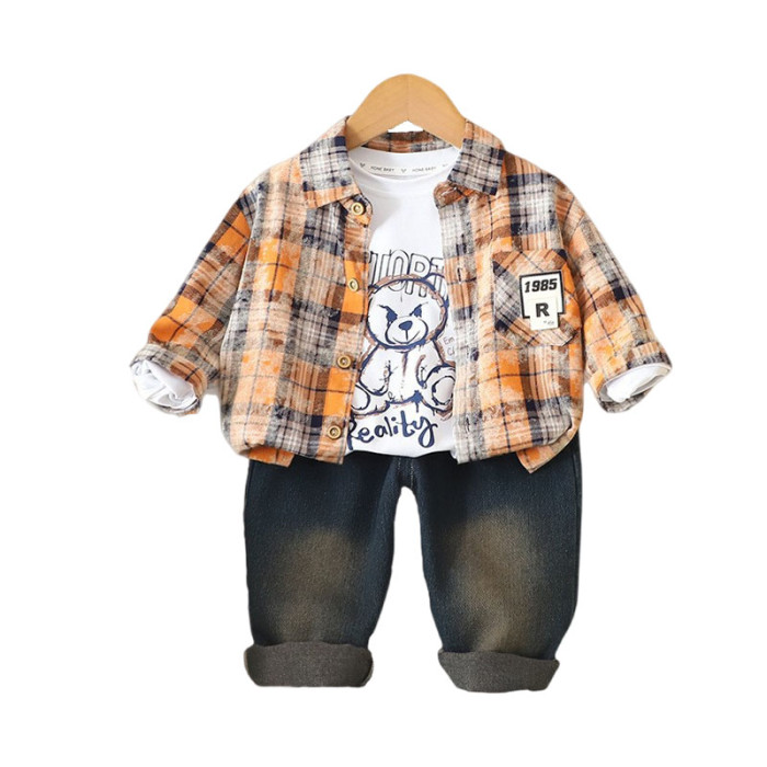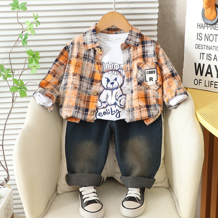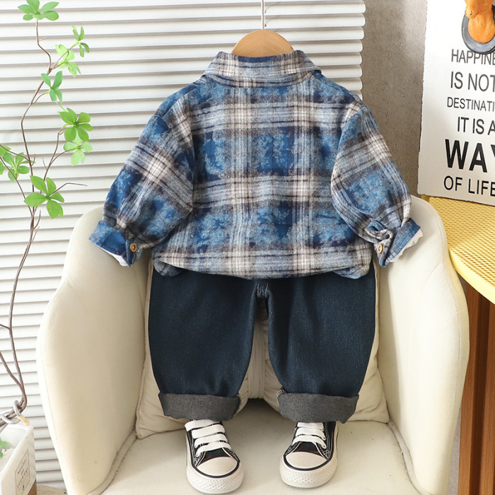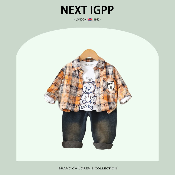 英國NEXT IGPP 男童格子襯衫春秋款兒童裝襯衣秋季休閒衣服三件套
