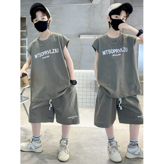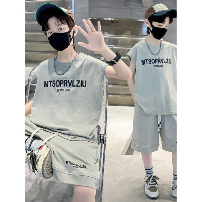 安哼安哼套裝韓版夏季印花男童