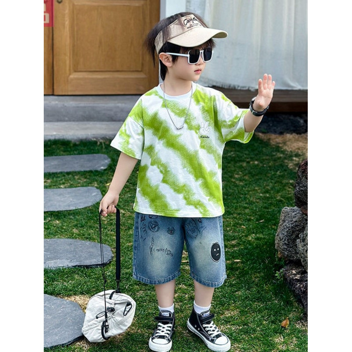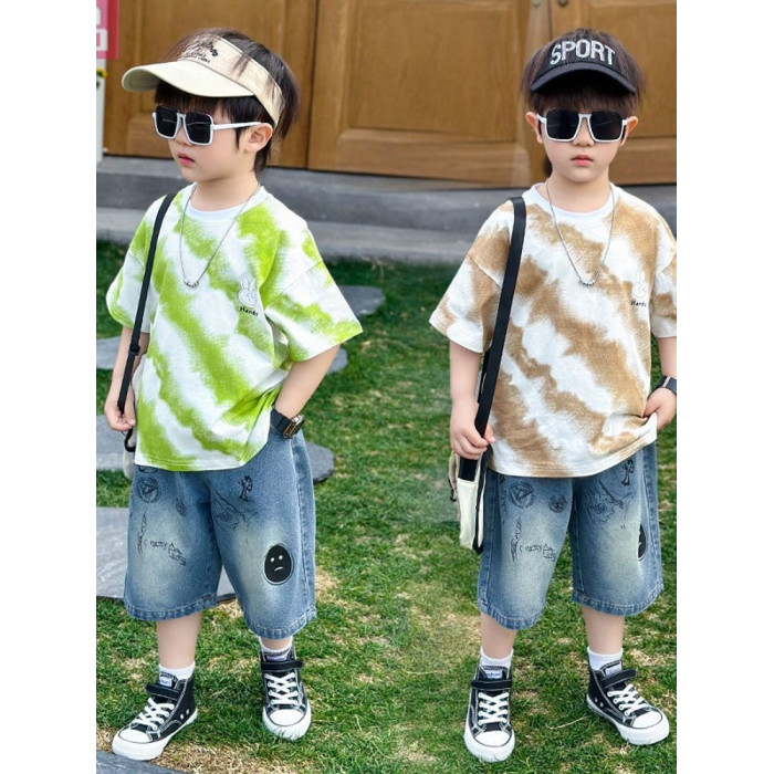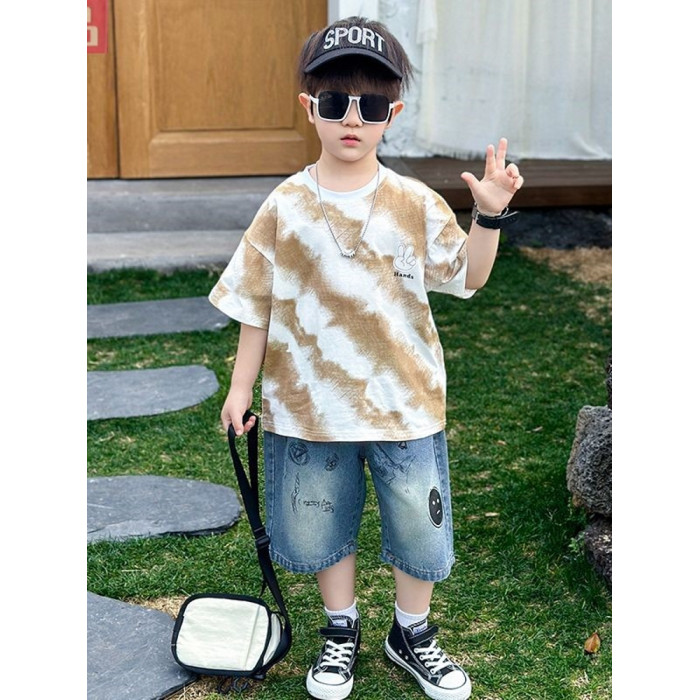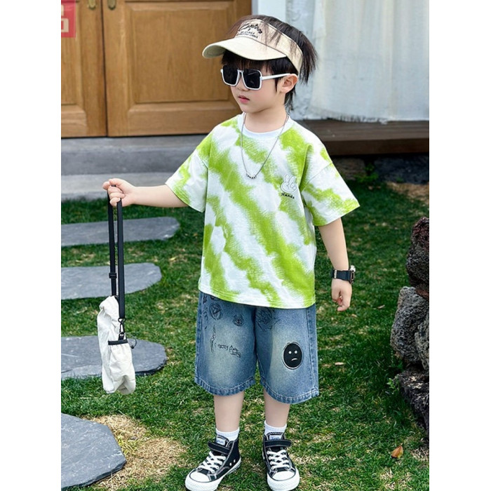 安哼安哼兒童裝男童夏裝套裝2025新款男孩夏季薄款運動衣服酷帥寬