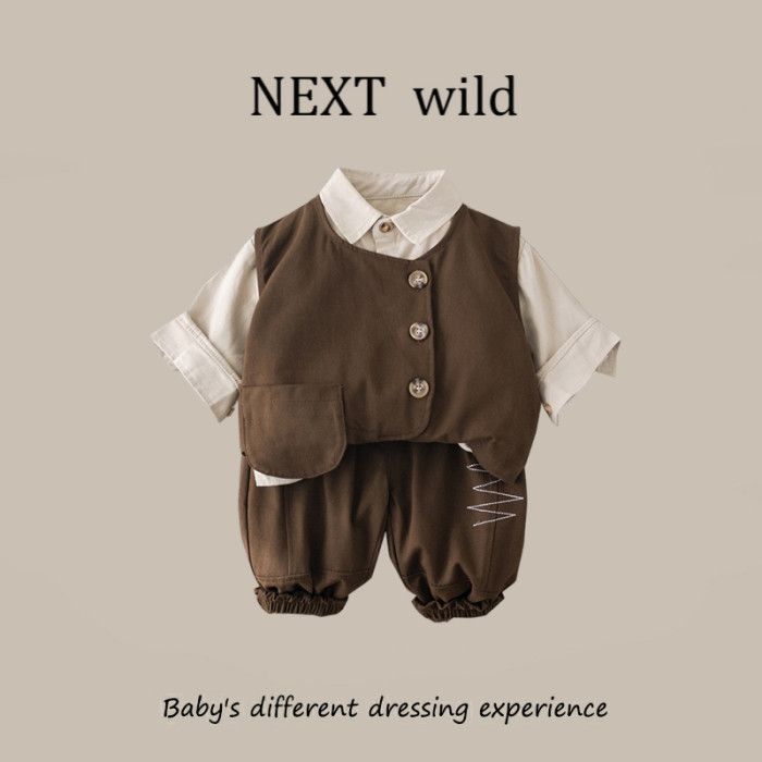 英國NEXT  wild兒童時尚秋季套裝男童馬甲襯衫三件套炸街休閒童裝