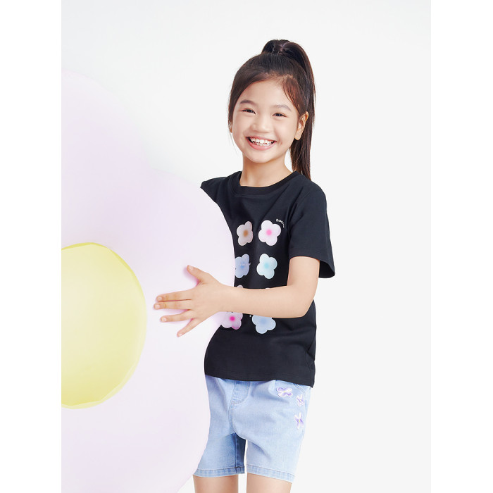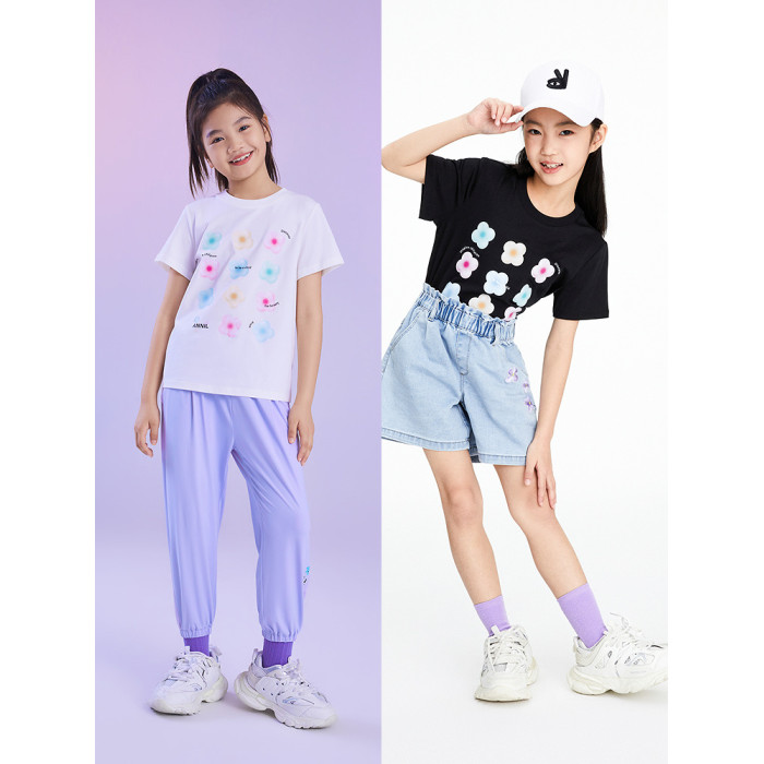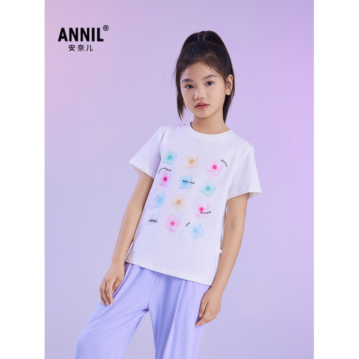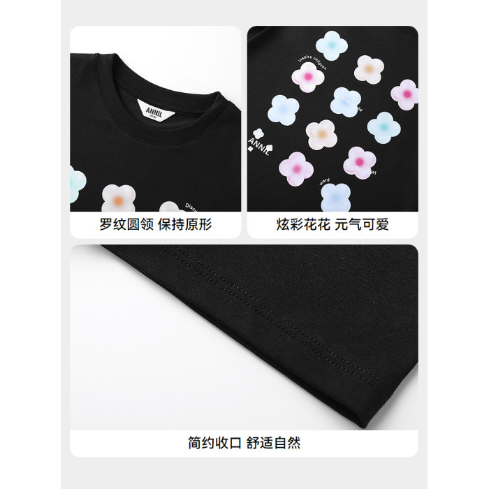 【記憶棉彈彈T】安奈兒童裝女童圓領短袖T恤2025夏新款休閒印花