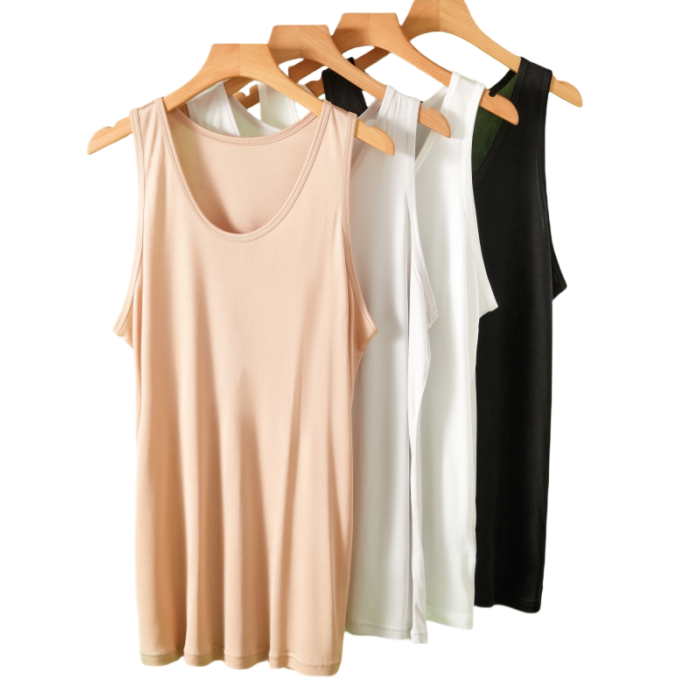 100%桑蠶絲男背心針織真絲寬肩圓領透氣涼爽無袖T恤衫汗衫夏季薄