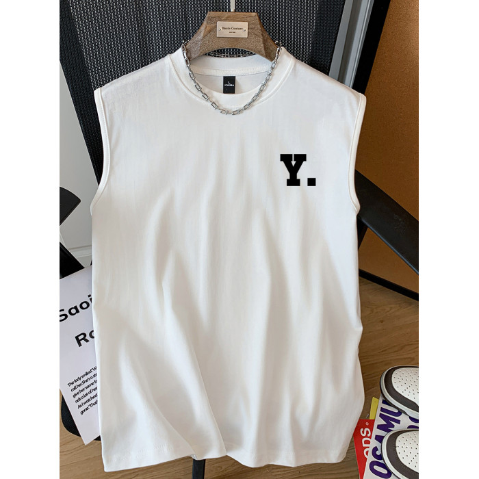 JIAF男生涼感雙紗無袖背心T恤260G重磅字母透氣百搭情侶簡約上衣