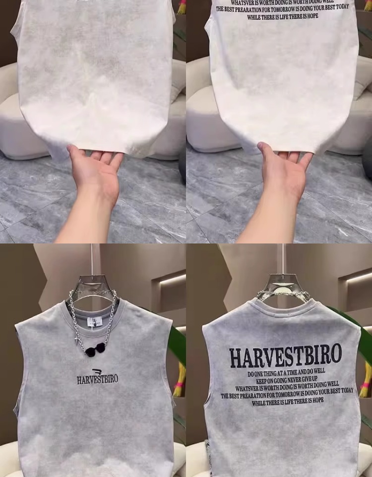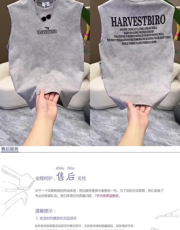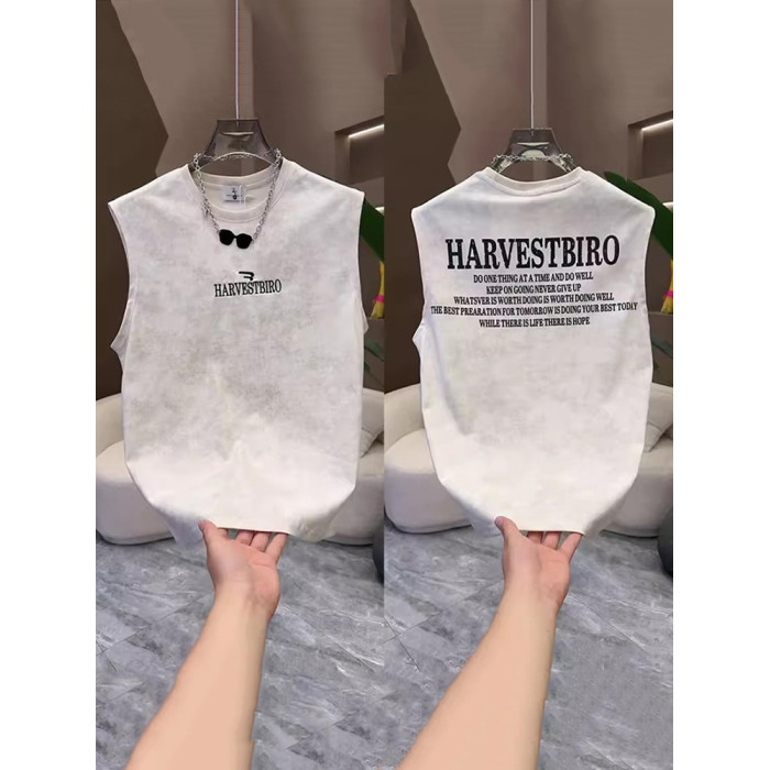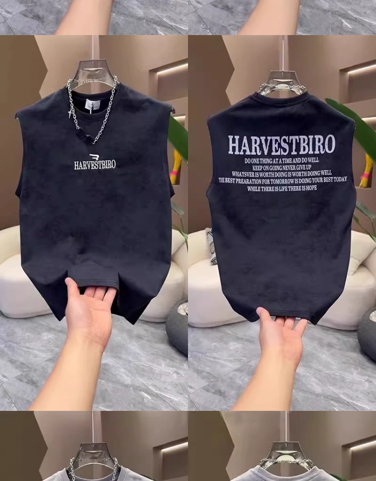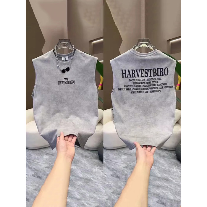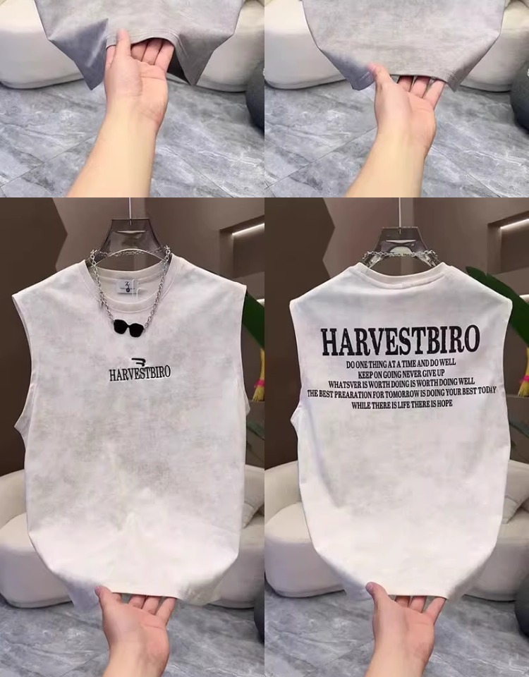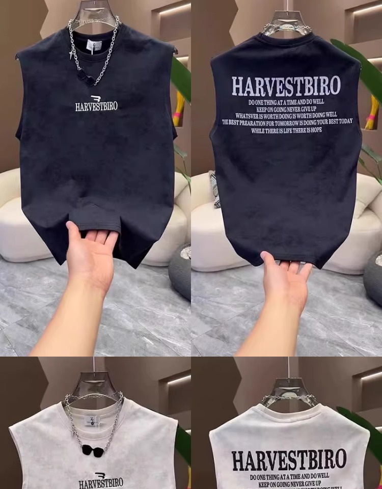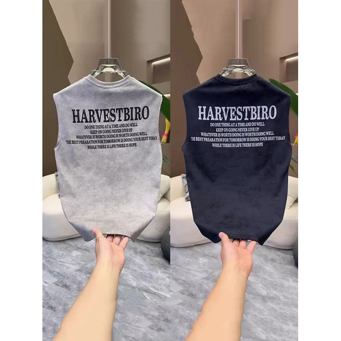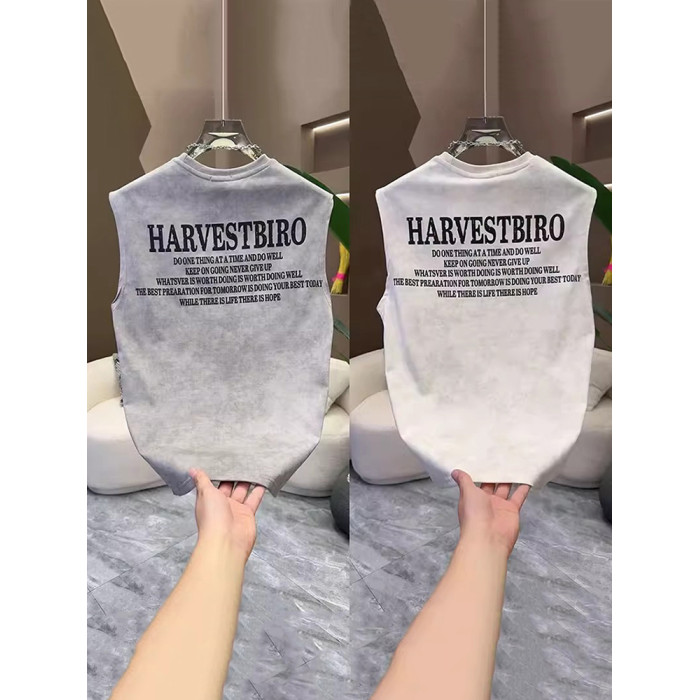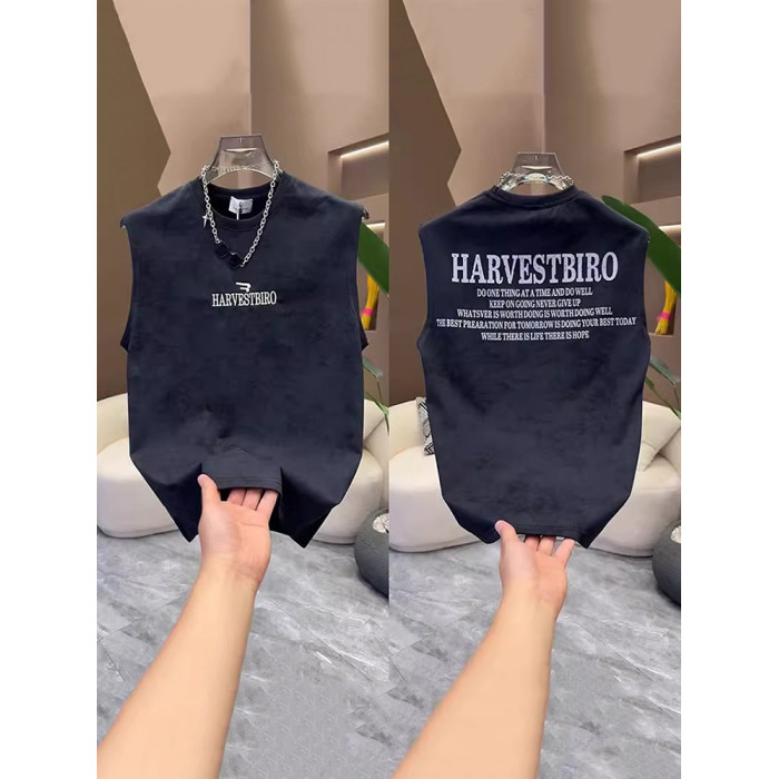 高級硬漢潮流無袖背心T恤男士2025新款夏季潮流運動休閒坎肩男款