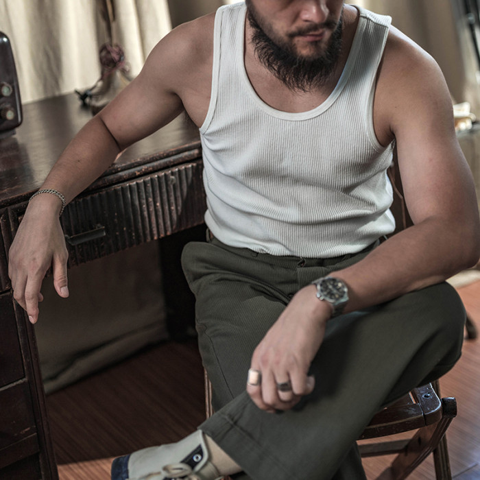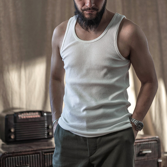 NON STOCK新品 基本款純棉修身打底背心男士純色圓領復古休閒汗衫