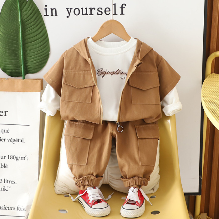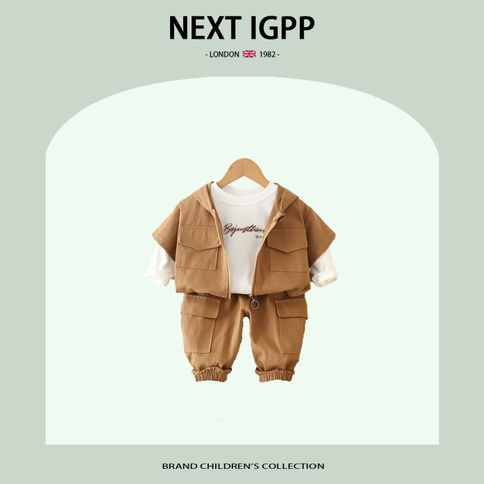 英國NEXT IGPP帥氣男孩工裝夾克開衫三件套春秋新款潮範男童衣服