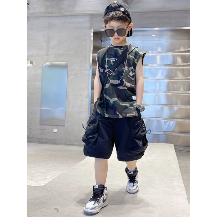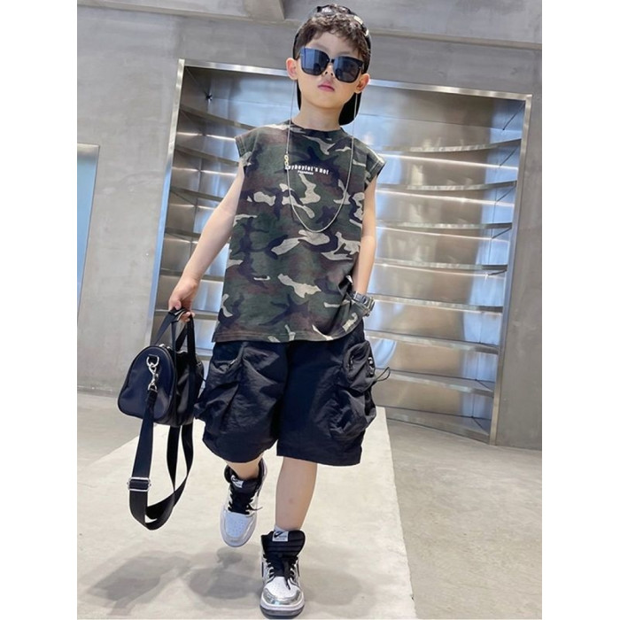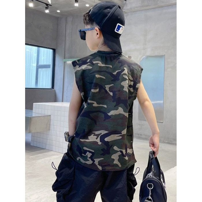安哼安哼男童迷彩背心套裝2025夏季新款洋氣痞帥無袖T恤中大童潮