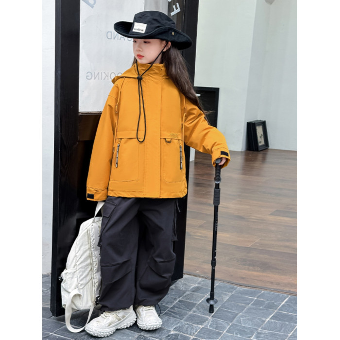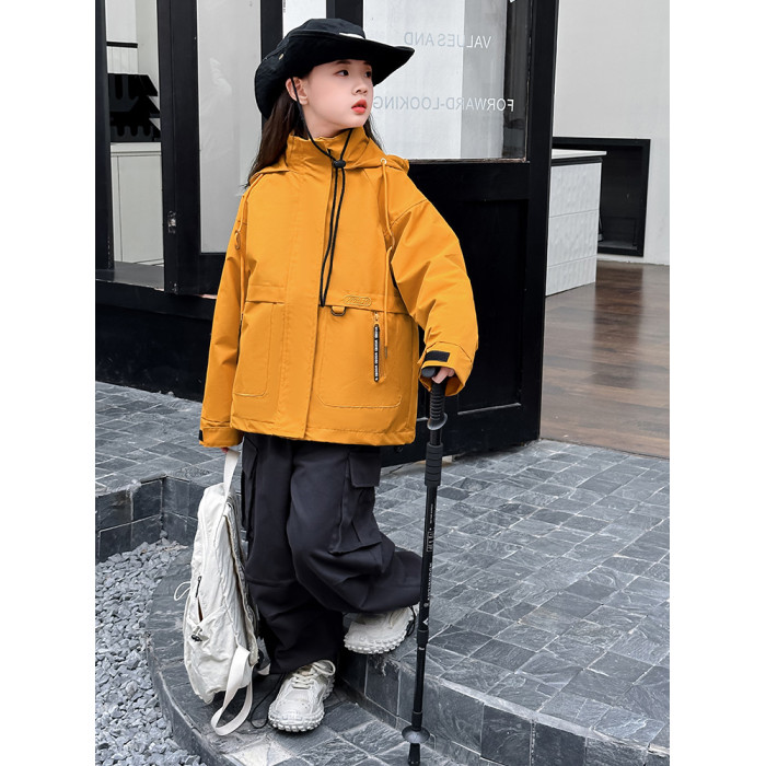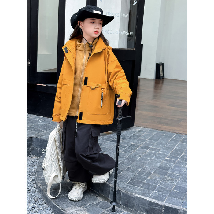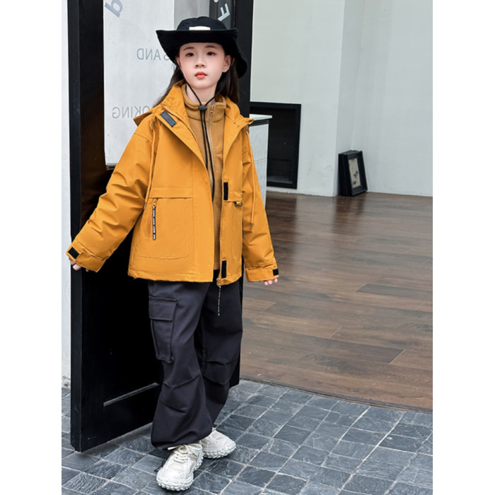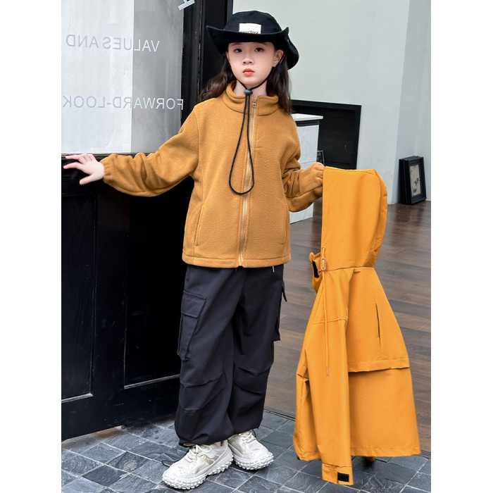 女童三合一沖鋒衣2025新款秋冬中大童洋氣時髦女孩連帽外套沖鋒衣