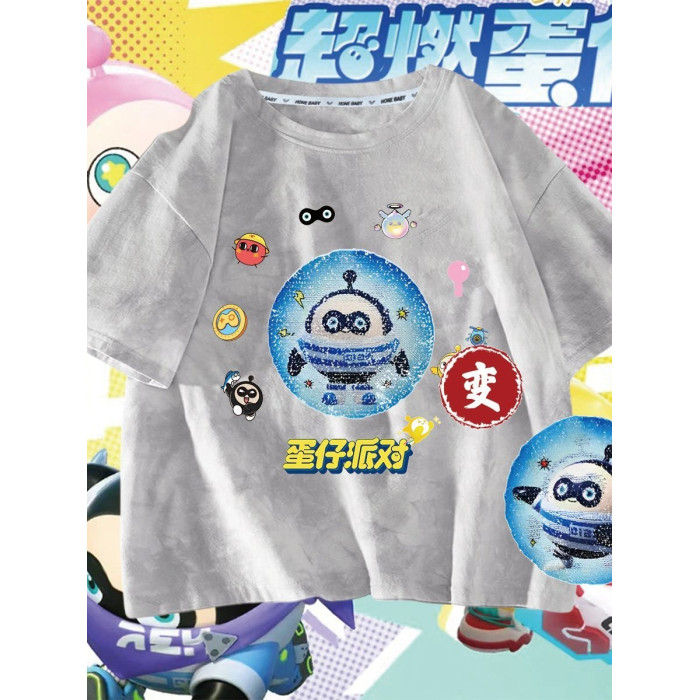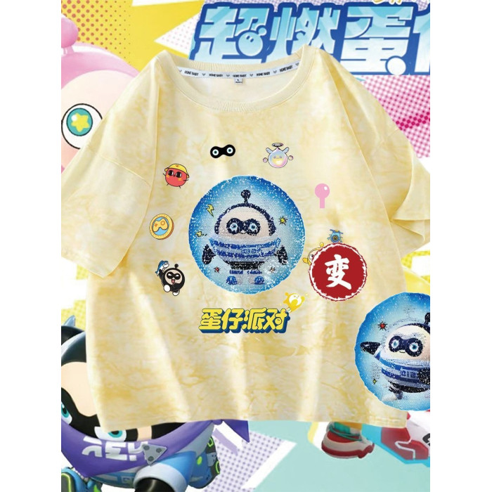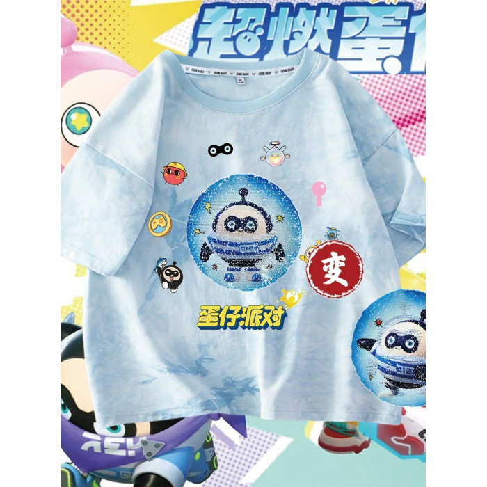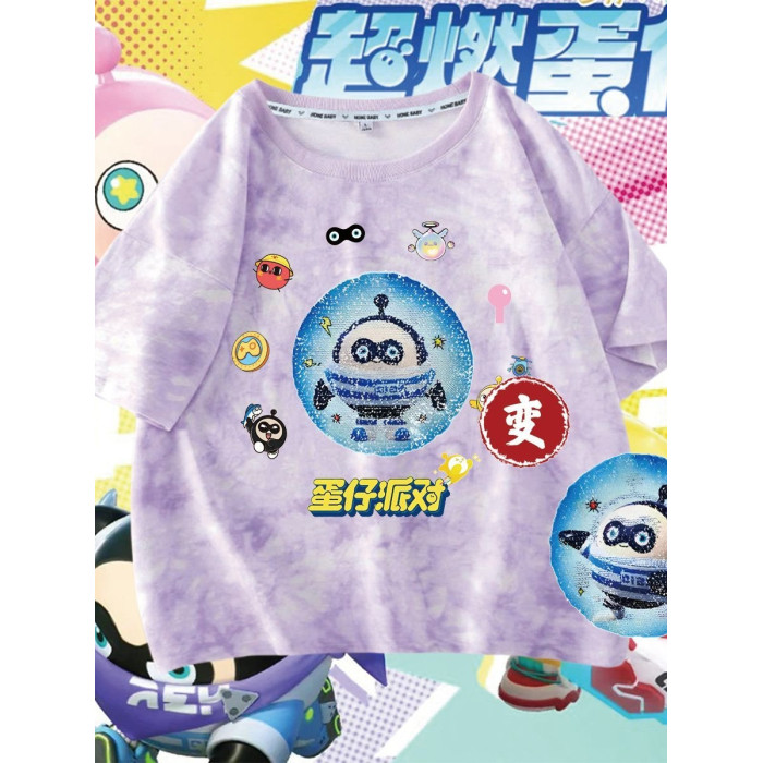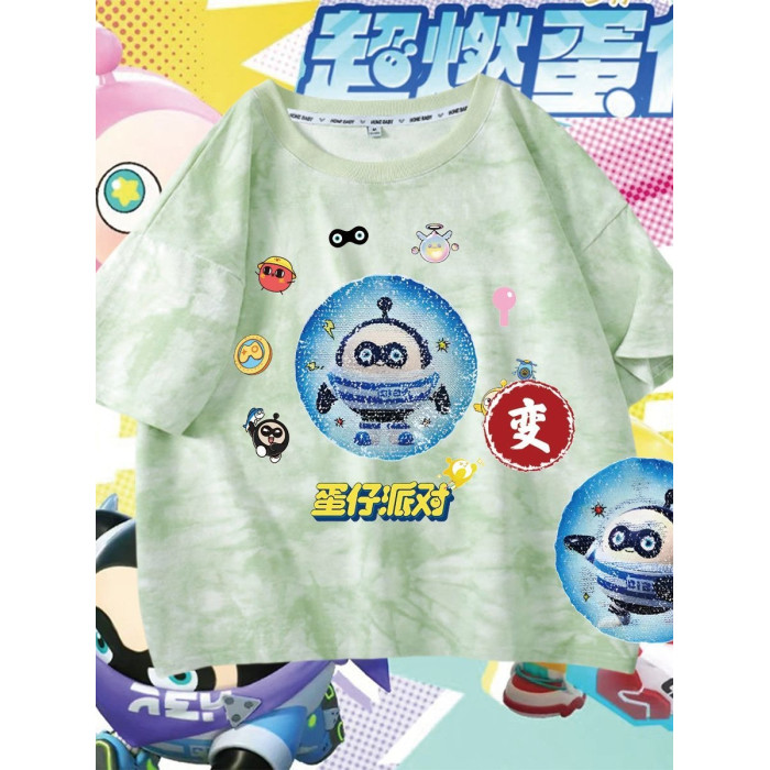 安哼安哼爆款兒童紥染短袖夏季純棉衣服卡通亮片蛋仔派對男童T恤