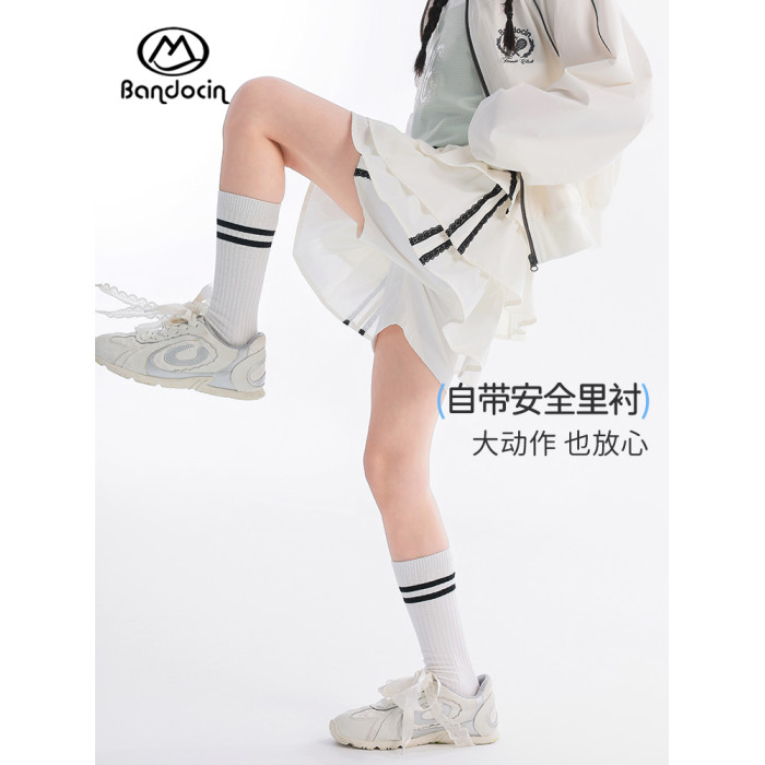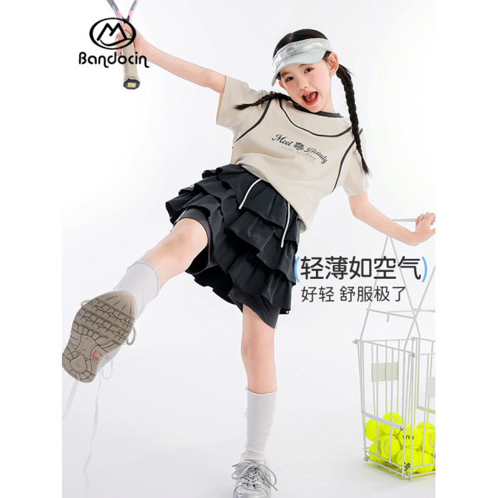 半度閒女童夏裝薄款百褶裙褲洋氣2025新款兒童夏季網球運動短裙子