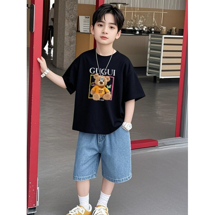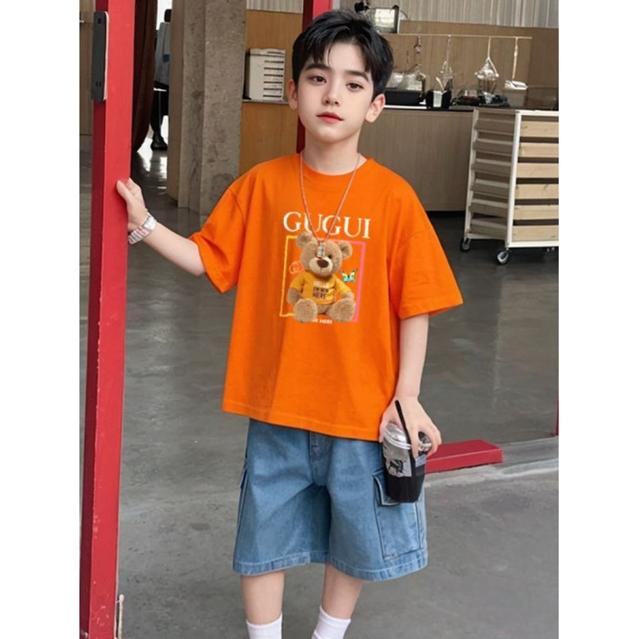 安哼安哼童裝男童T恤短袖純棉透氣兒童夏裝上衣2025新款大童男孩
