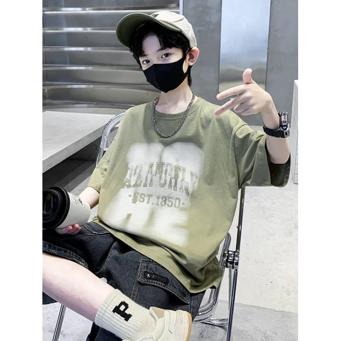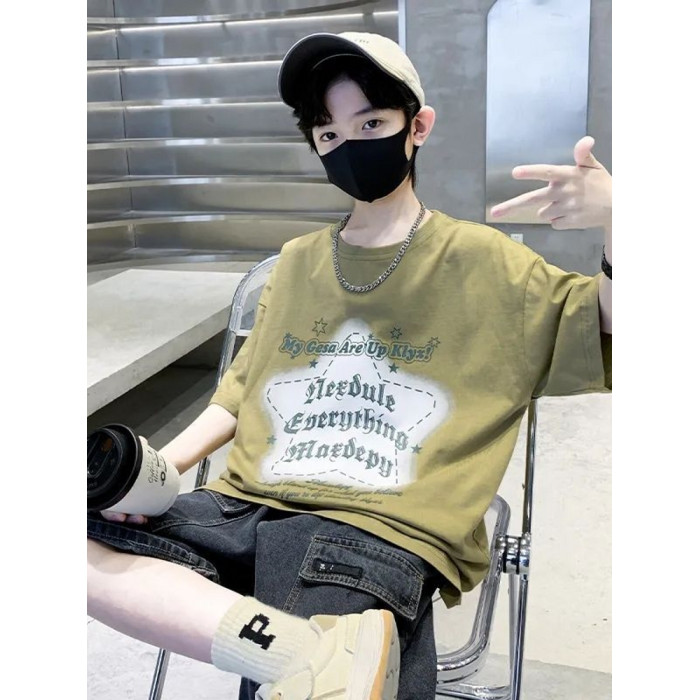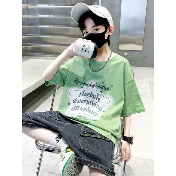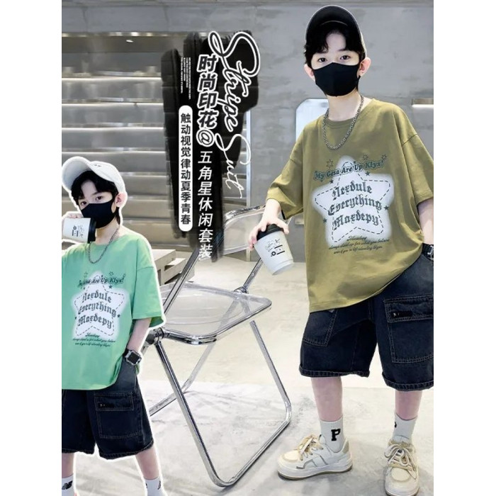 男童夏裝套裝中大童2025新款男孩洋氣韓版短袖牛仔褲運動兩a0331