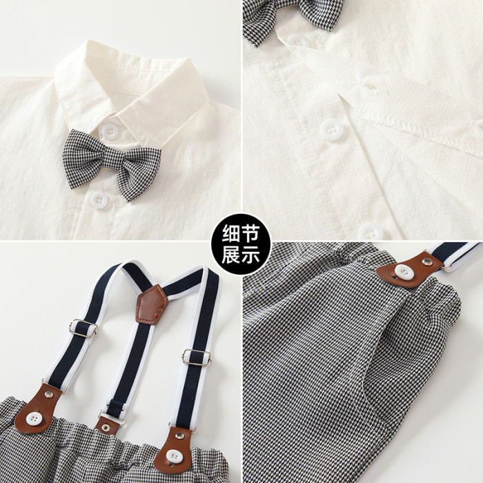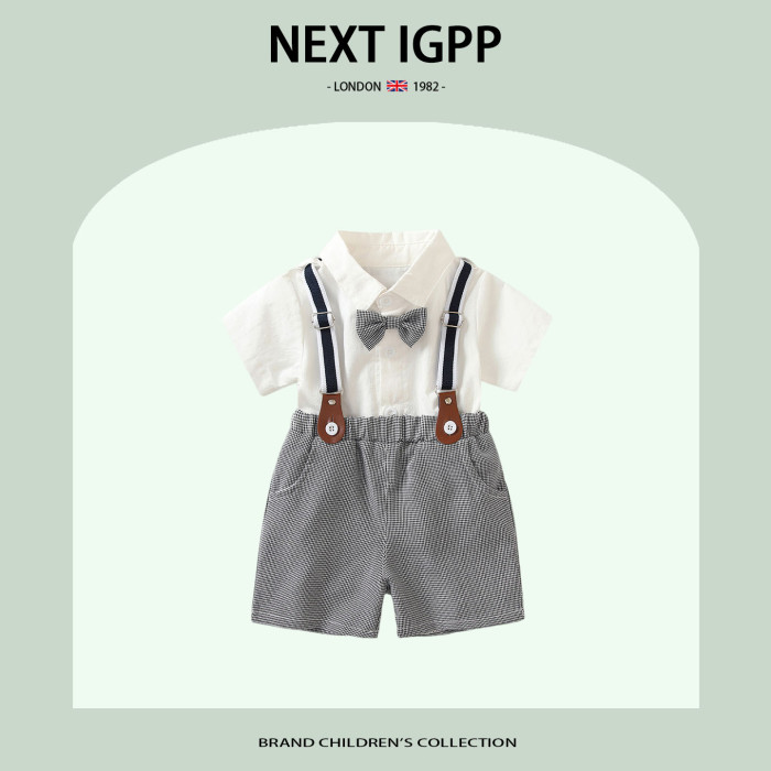 英國NEXT IGPP男童紳士禮服套裝夏季新款短袖白色襯衫背帶褲套裝