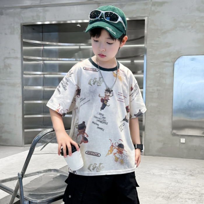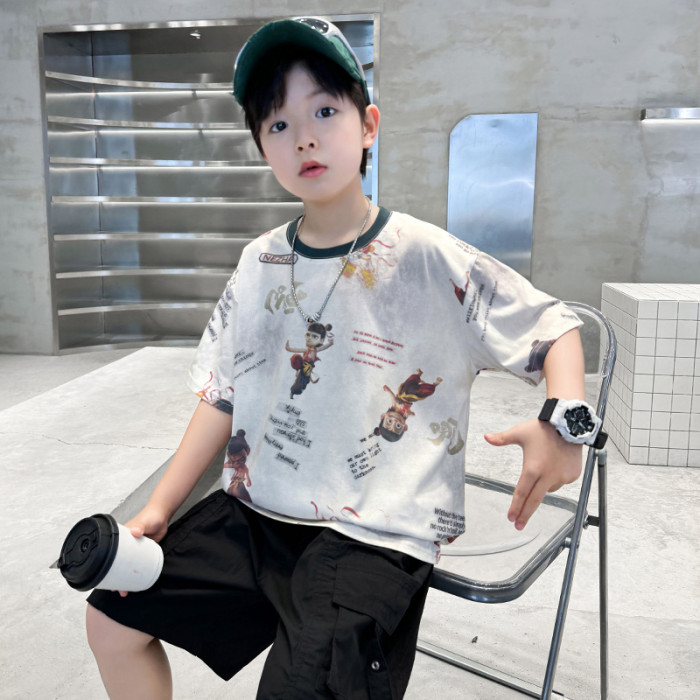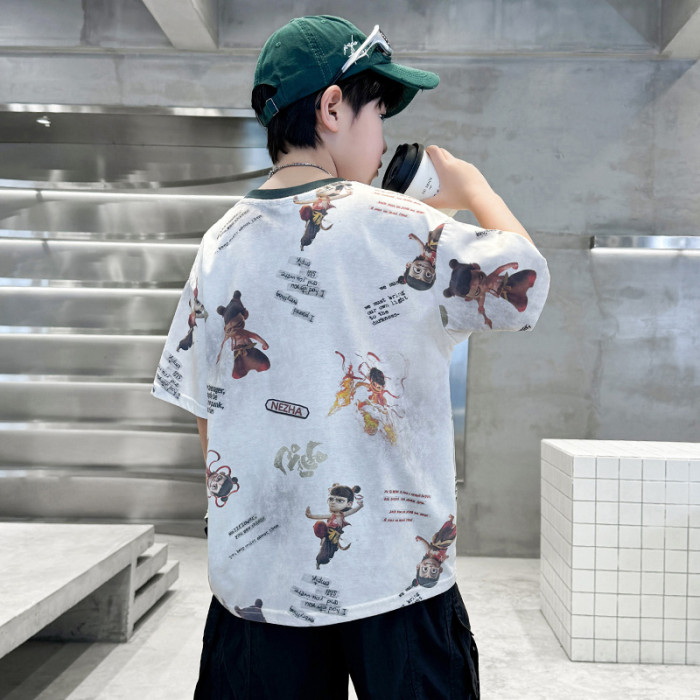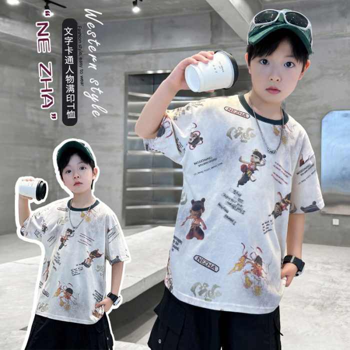 2025新款夏季兒童卡通滿印短袖T恤男童時尚百搭半袖上衣夏款潮