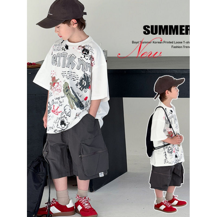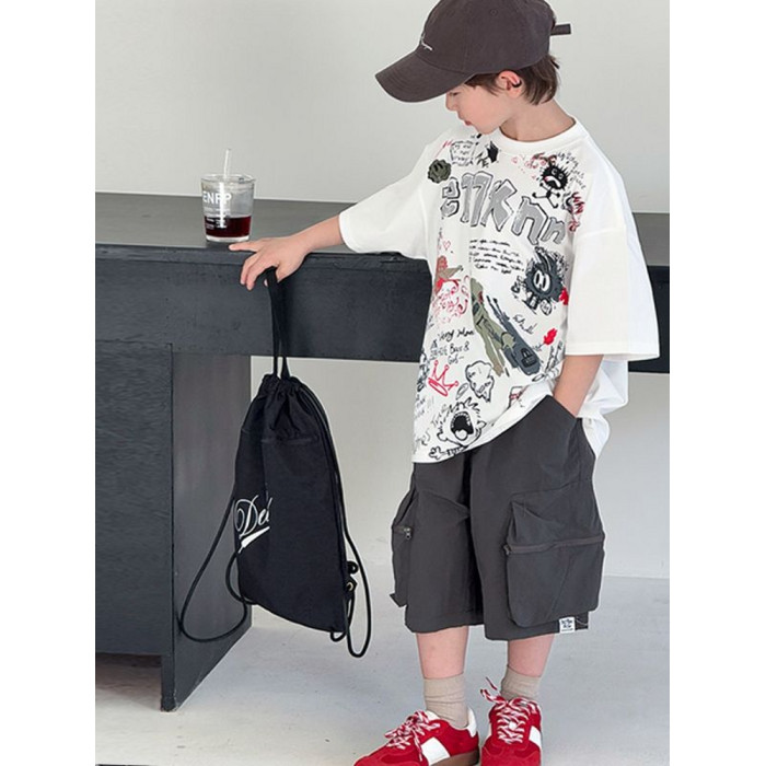 安哼安哼男童夏裝套裝2025新款夏季洋氣兒童裝中大童帥氣男孩短袖
