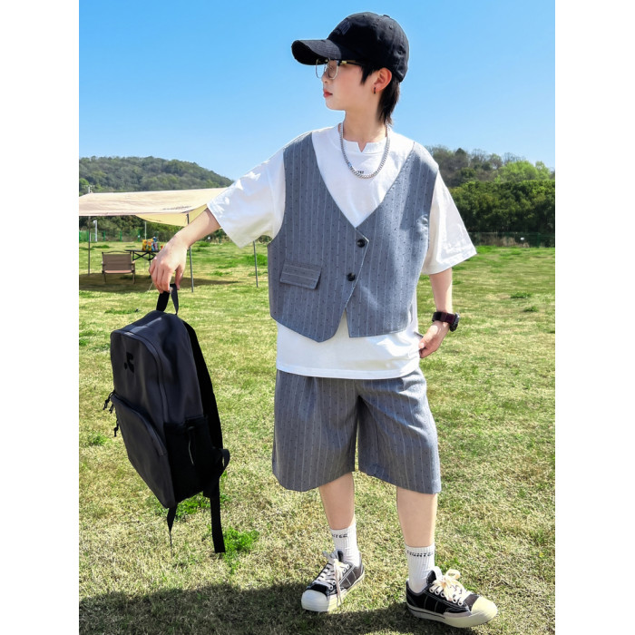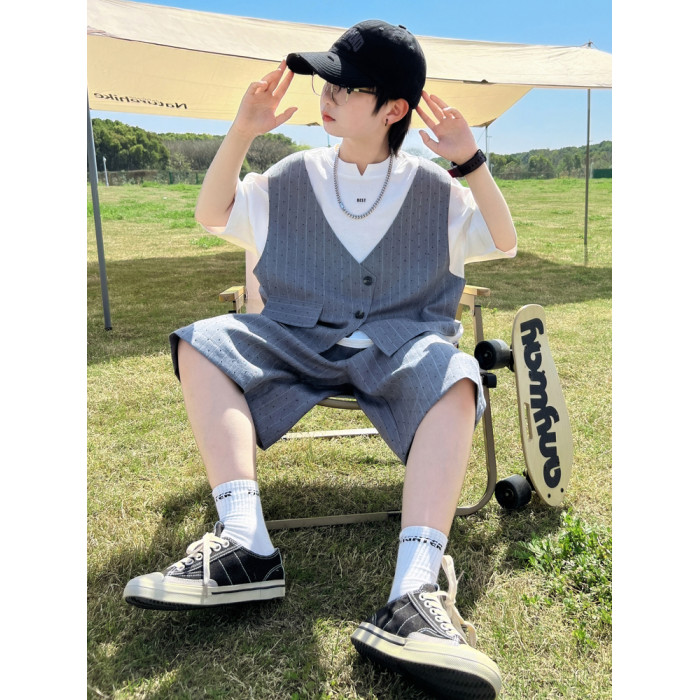 男童套裝夏季2025新款兒童夏裝中大童休閒衣服短袖帥氣時髦男孩潮