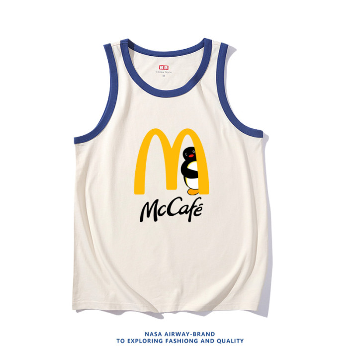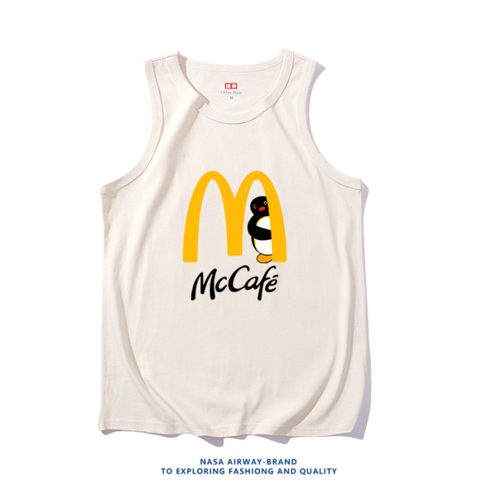 NASA聯名麥噹勞企鵞家族卡通純棉吊帶背心男女學生無袖T恤夏季潮