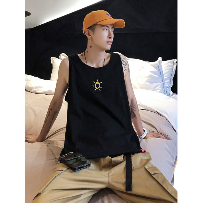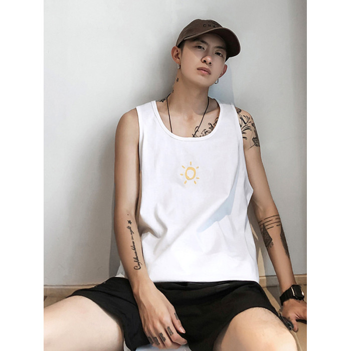 潮牌外穿背心二股二道跨欄兩根筋運動男土青少年吊帶褂頭無袖T恤