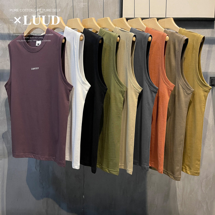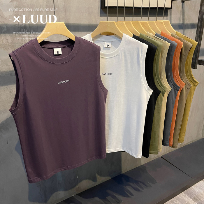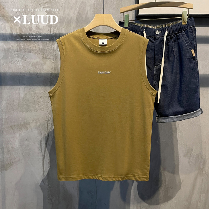 2025夏季新款高級潮流100%純棉無袖坎肩背心男士運動百搭T恤衫潮