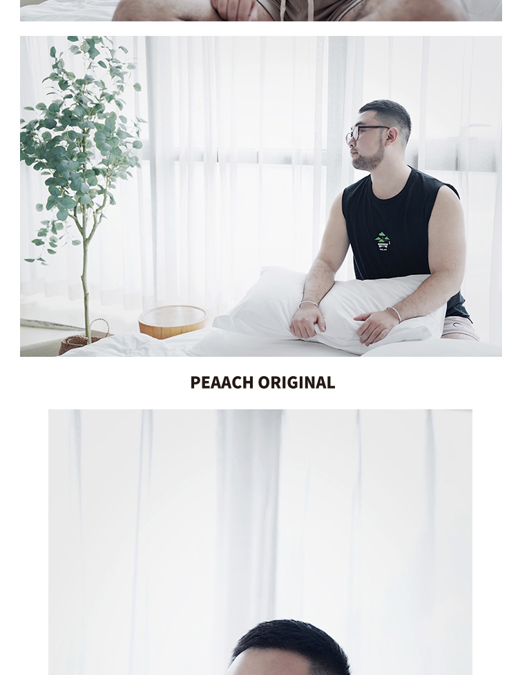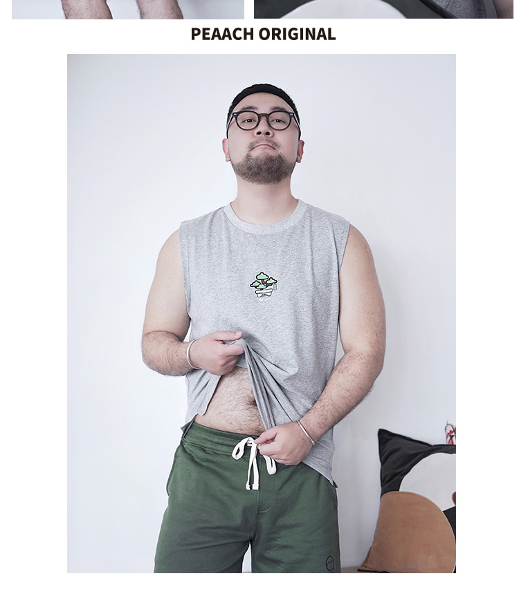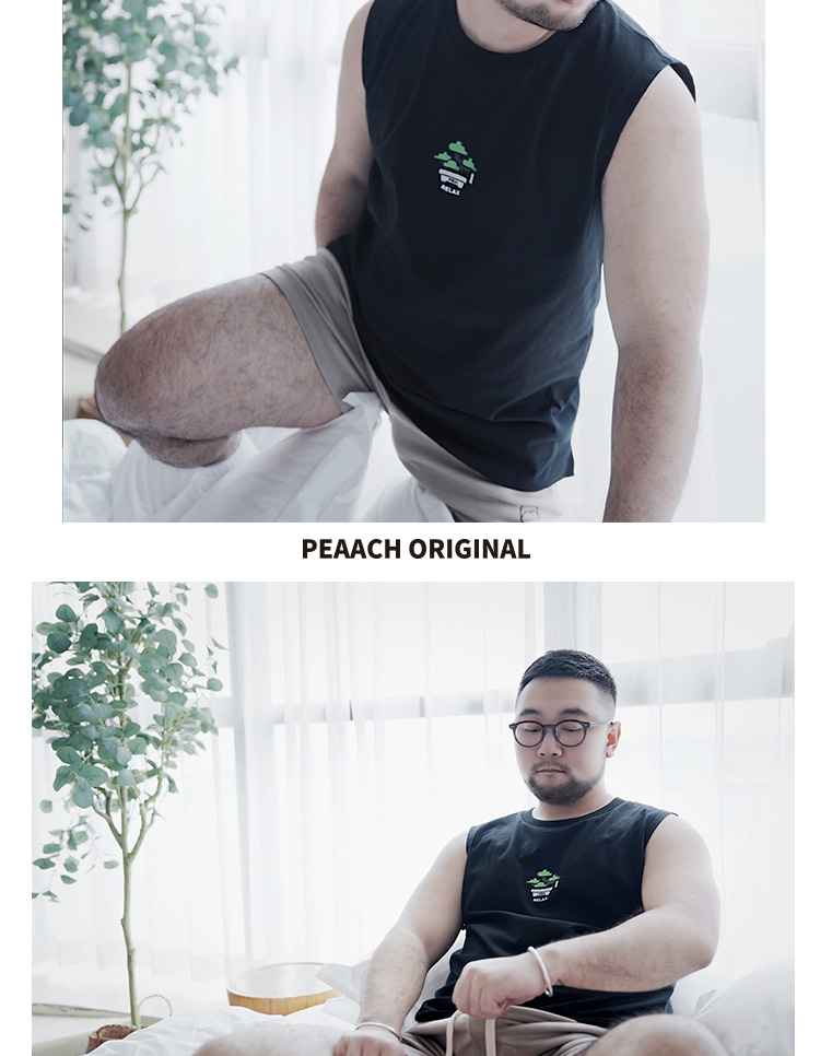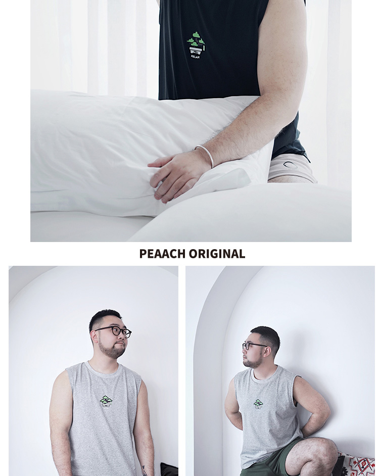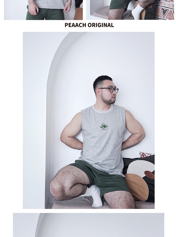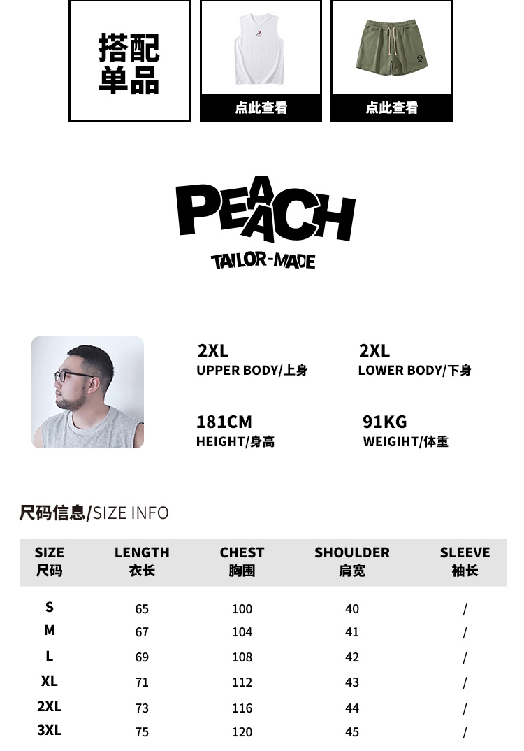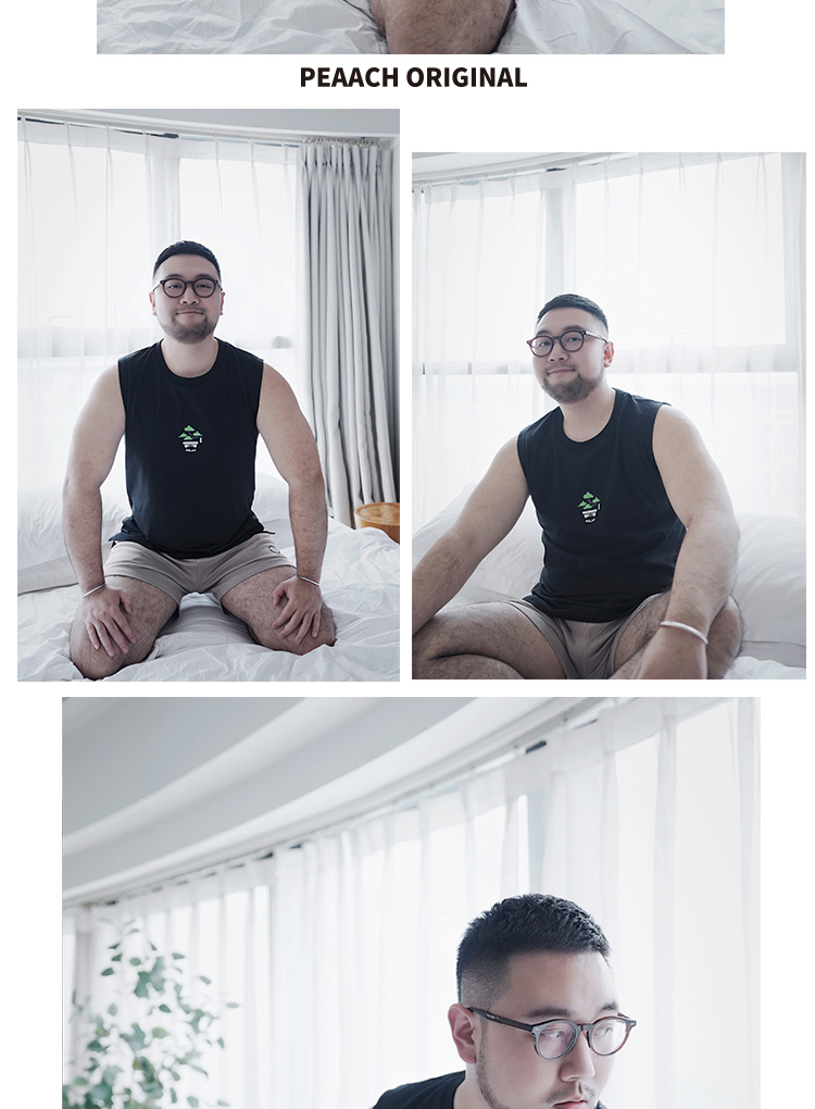 PEAACH日系休閒大碼圓領印花無袖背心美式健身運動寬松坎肩T恤男