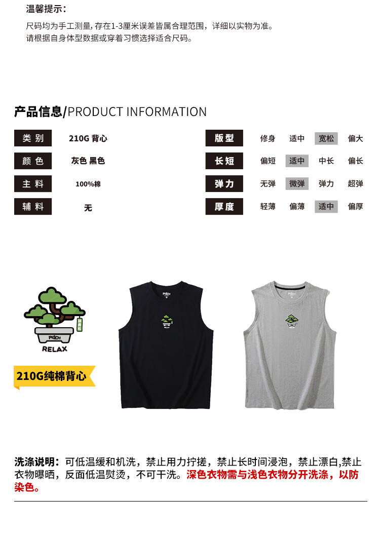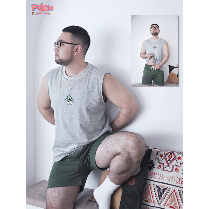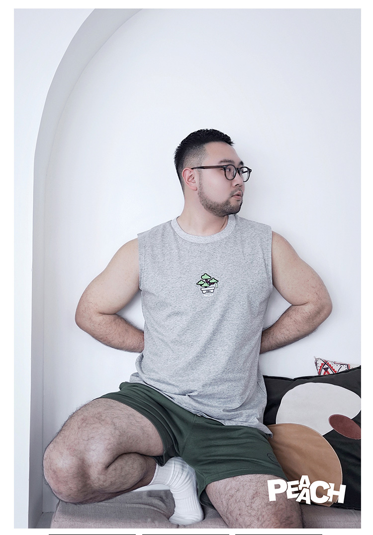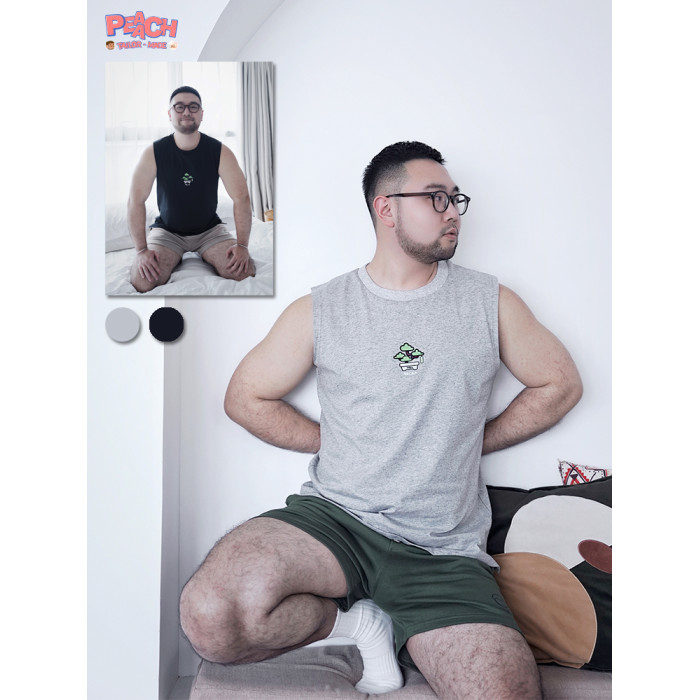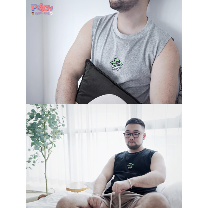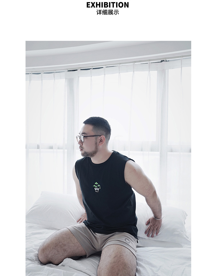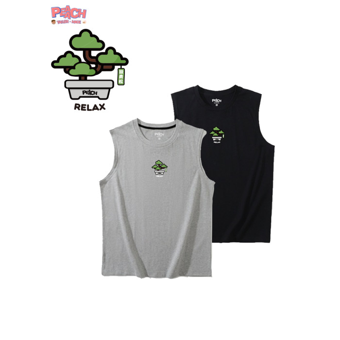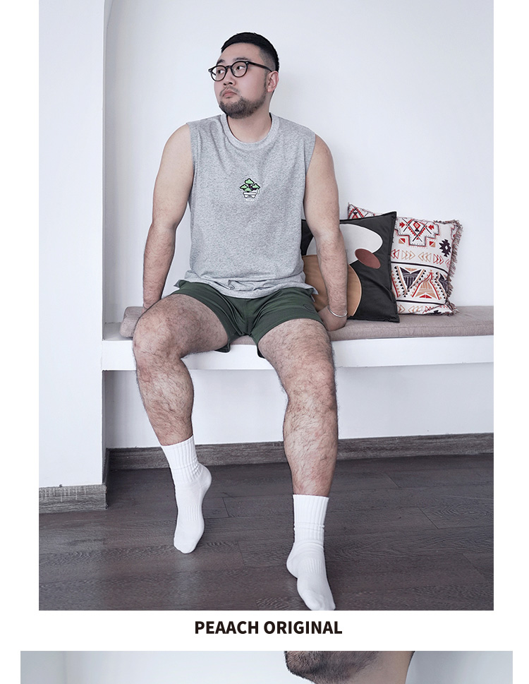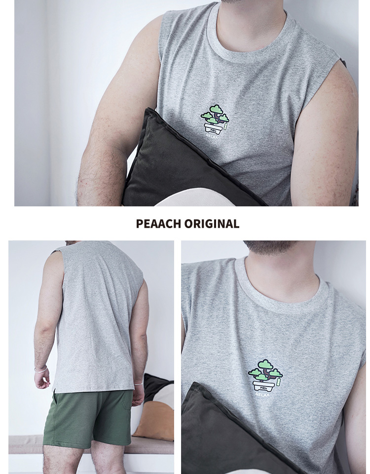 PEAACH日系休閒大碼圓領印花無袖背心美式健身運動寬松坎肩T恤男