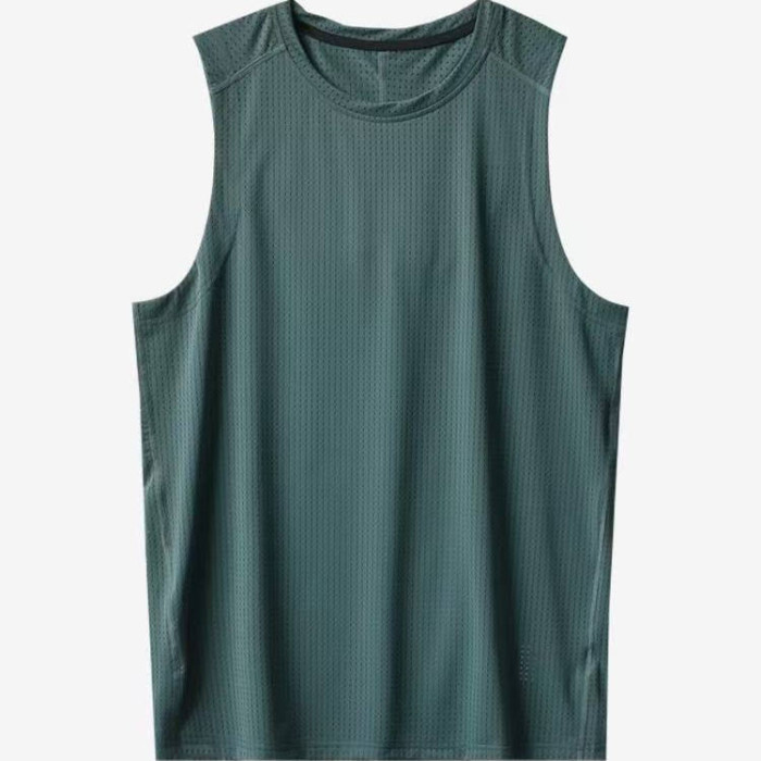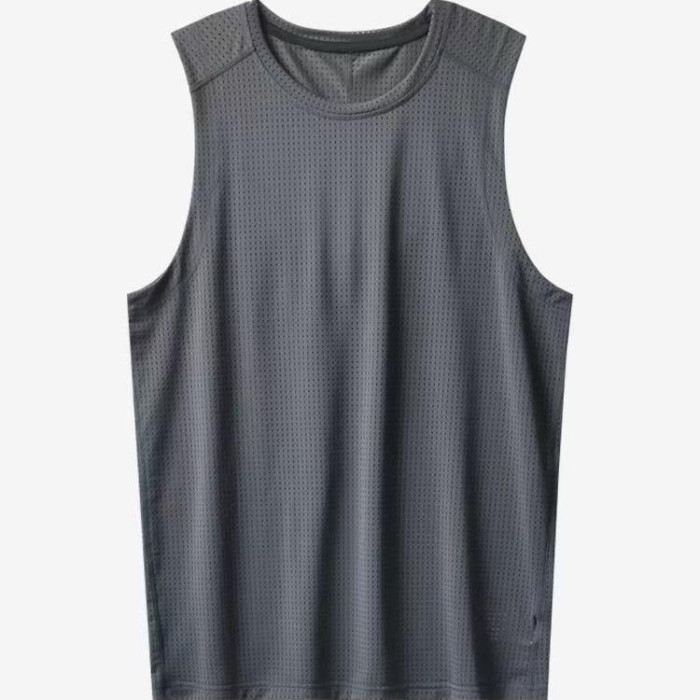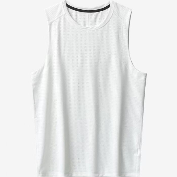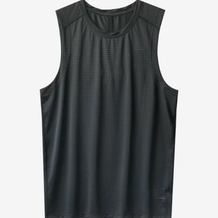 簡約百搭純色速乾透氣網眼運動休閒運動無袖背心T恤上衣男