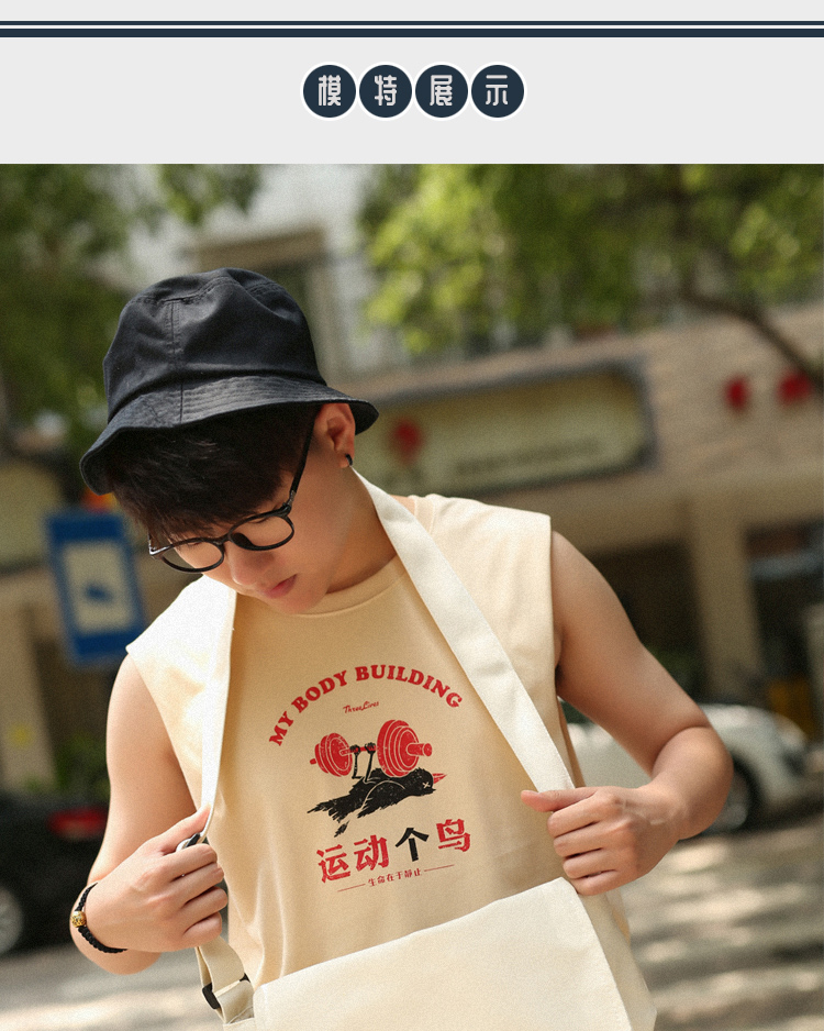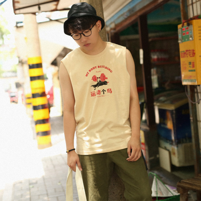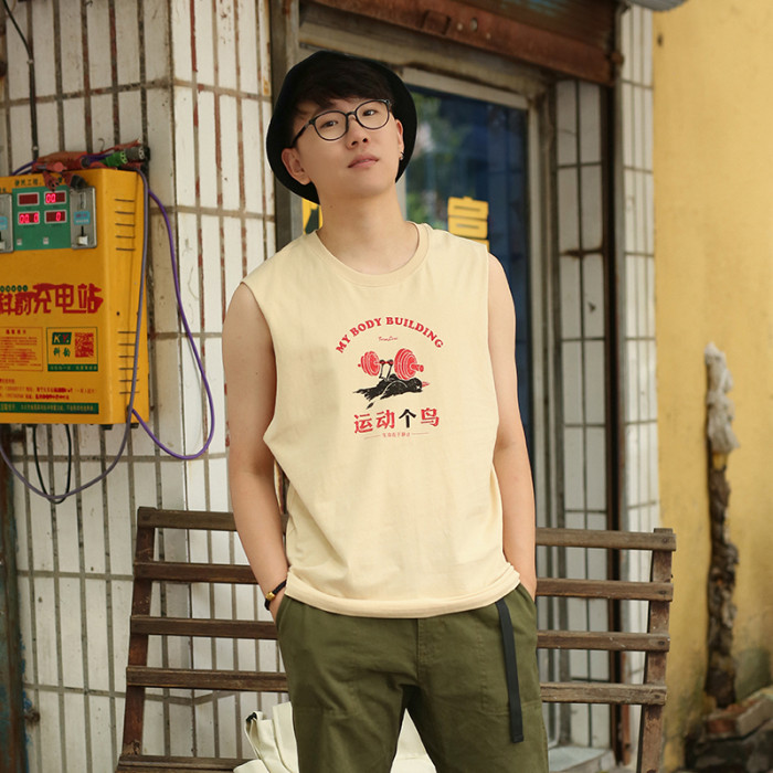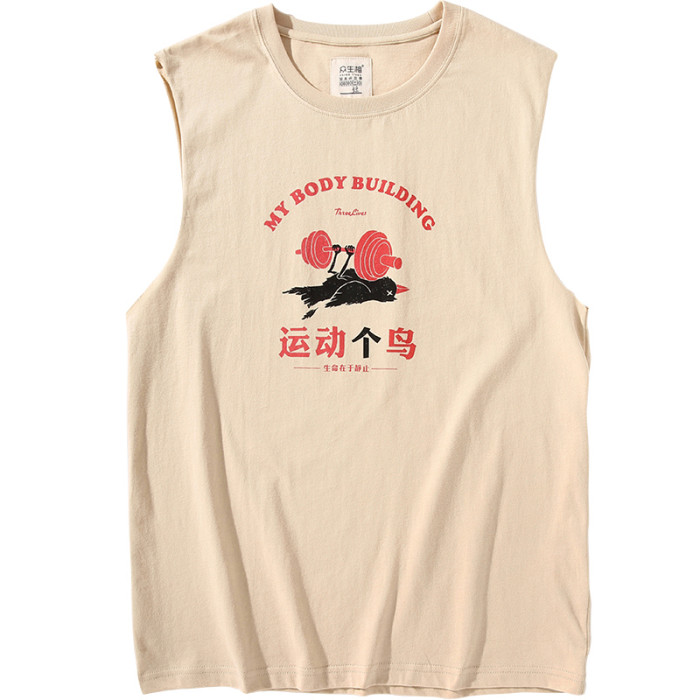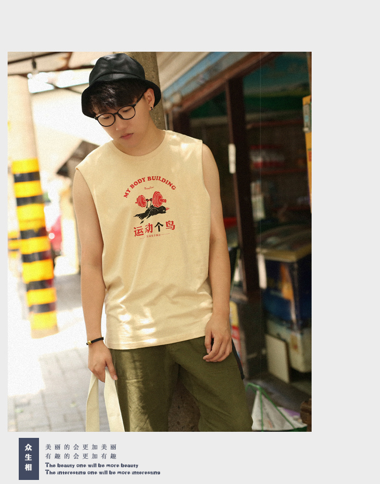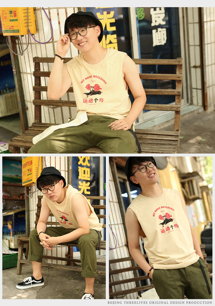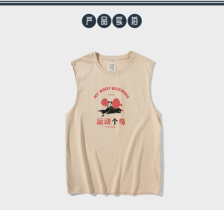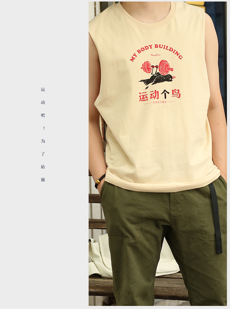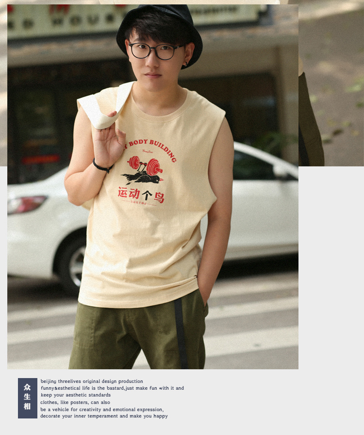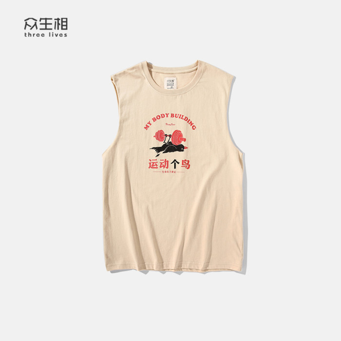 衆生相健身運動無肩坎肩男 運動個鳥 純棉背心男潮牌夏季無袖T恤