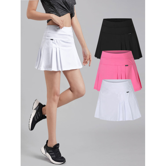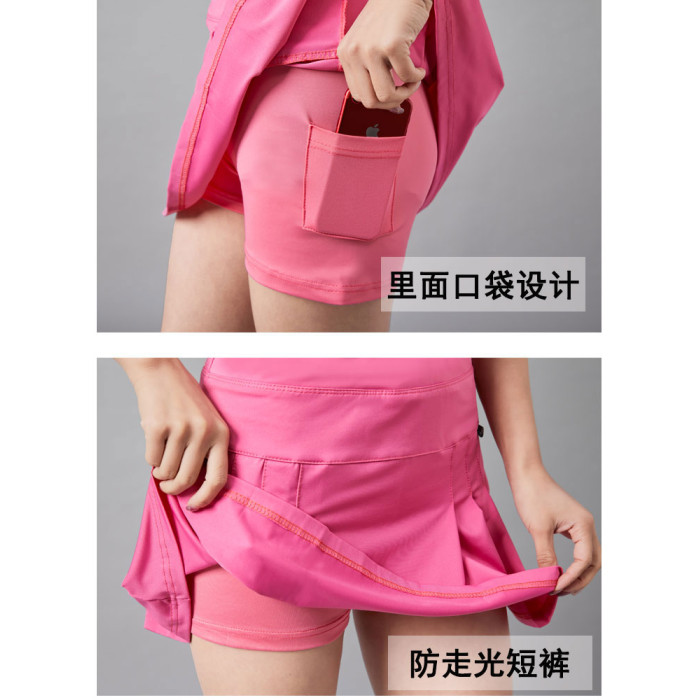 速乾運動褲裙女夏跑步假兩件短裙羽毛球網球半身瑜伽防走光百褶裙
