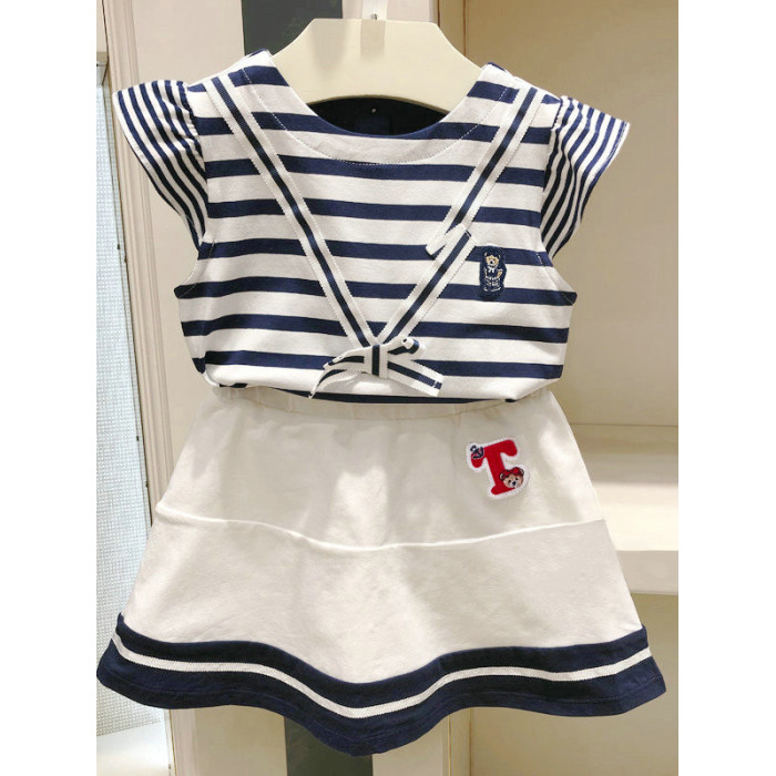 25夏款小熊童裝女童條紋海軍風短袖T恤TKRA93753A裙褲 TKWH93752A