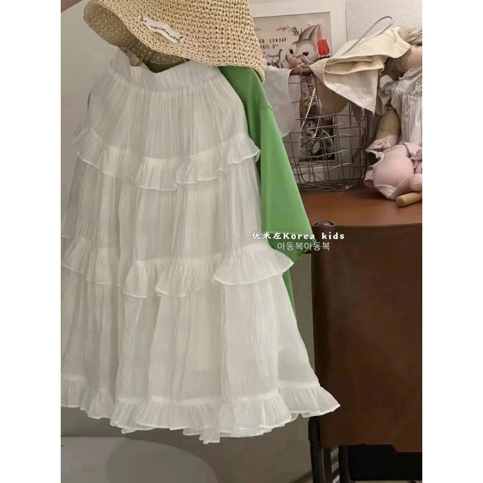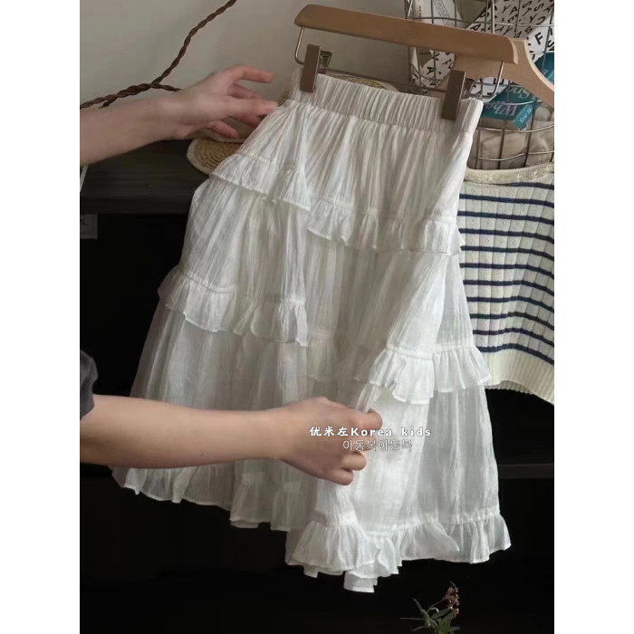 波拉bora韓國童裝女童白色仙女裙2025春夏季女孩半裙甜美氣質裙子