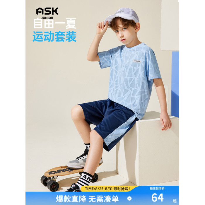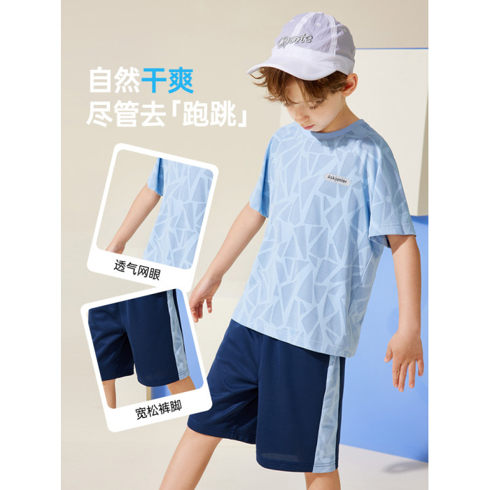 ASKjunior童裝套裝2025夏季新款男童短袖速乾兒童T恤五分褲兩件套