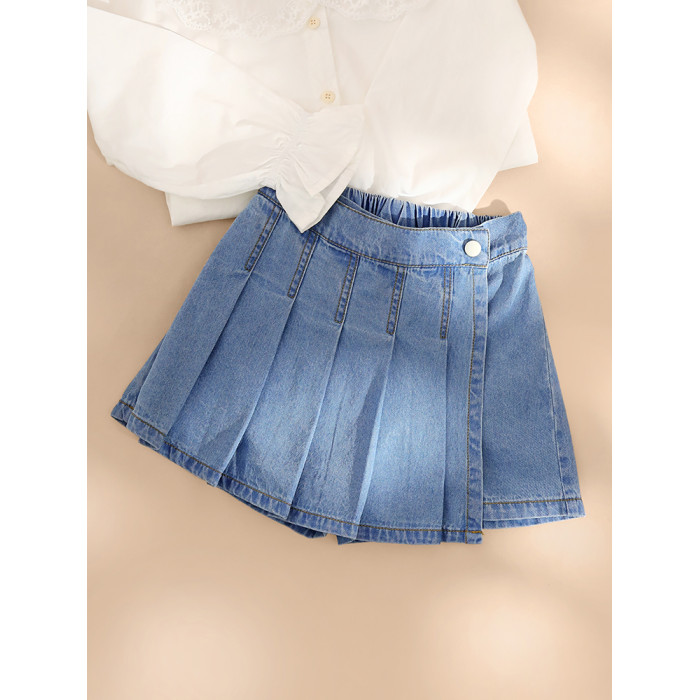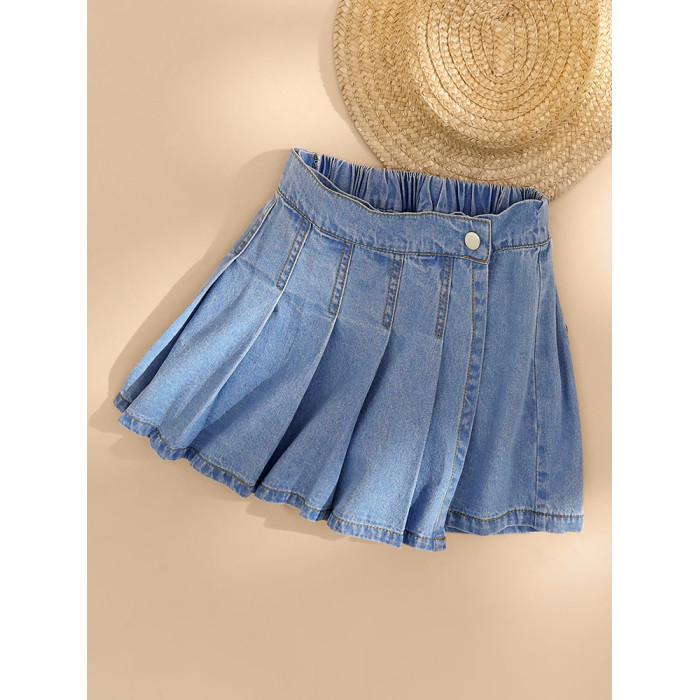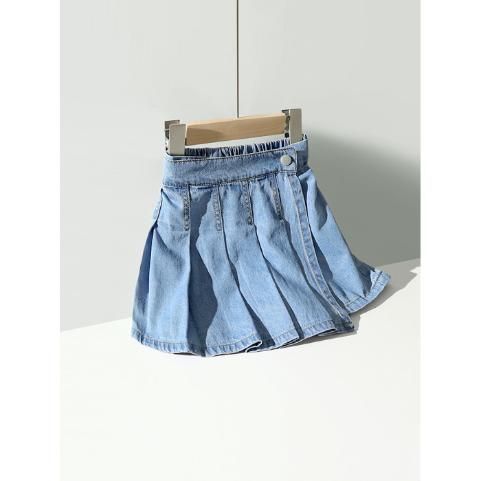小虎帕蒂女童百褶牛仔裙褲半身裙中大童夏季純棉牛仔短褲柔軟百搭