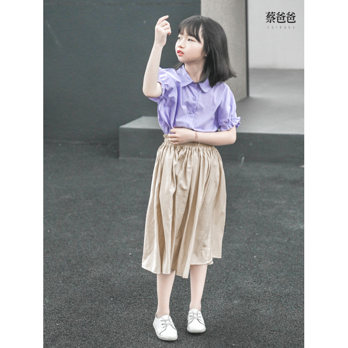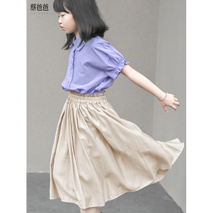 蔡爸爸原創女童裝新款夏裝冰爽人棉半身裙卡其A字裙子851+935+676